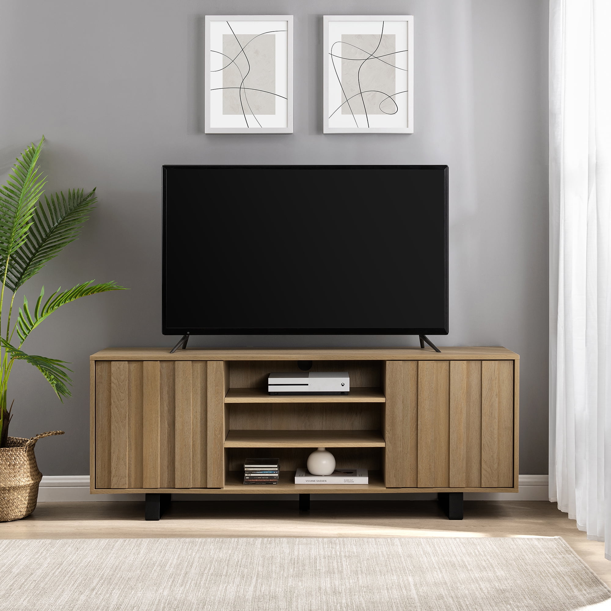 Walker Edison Contemporary Vertical Paneled TV Stand for TVs up to 65”, Coastal Oak