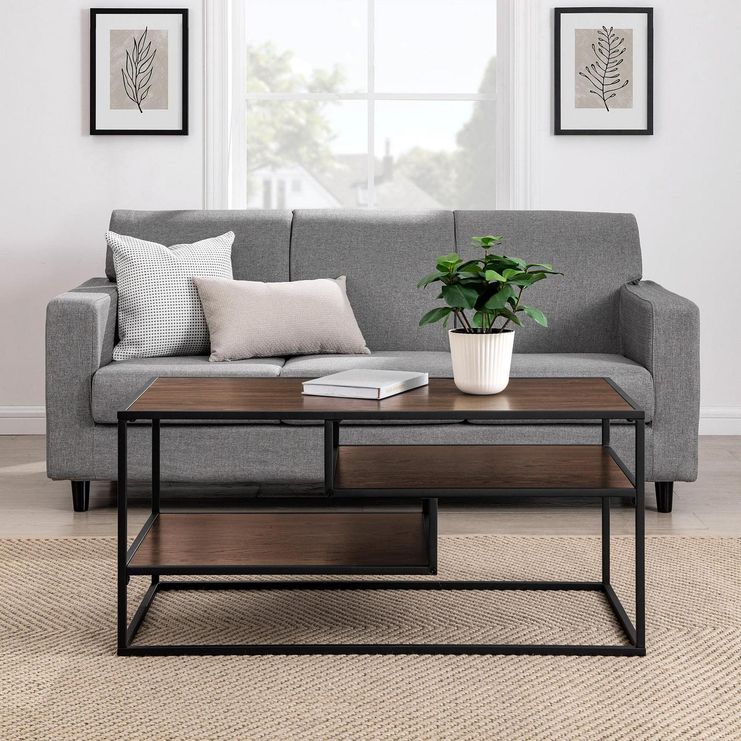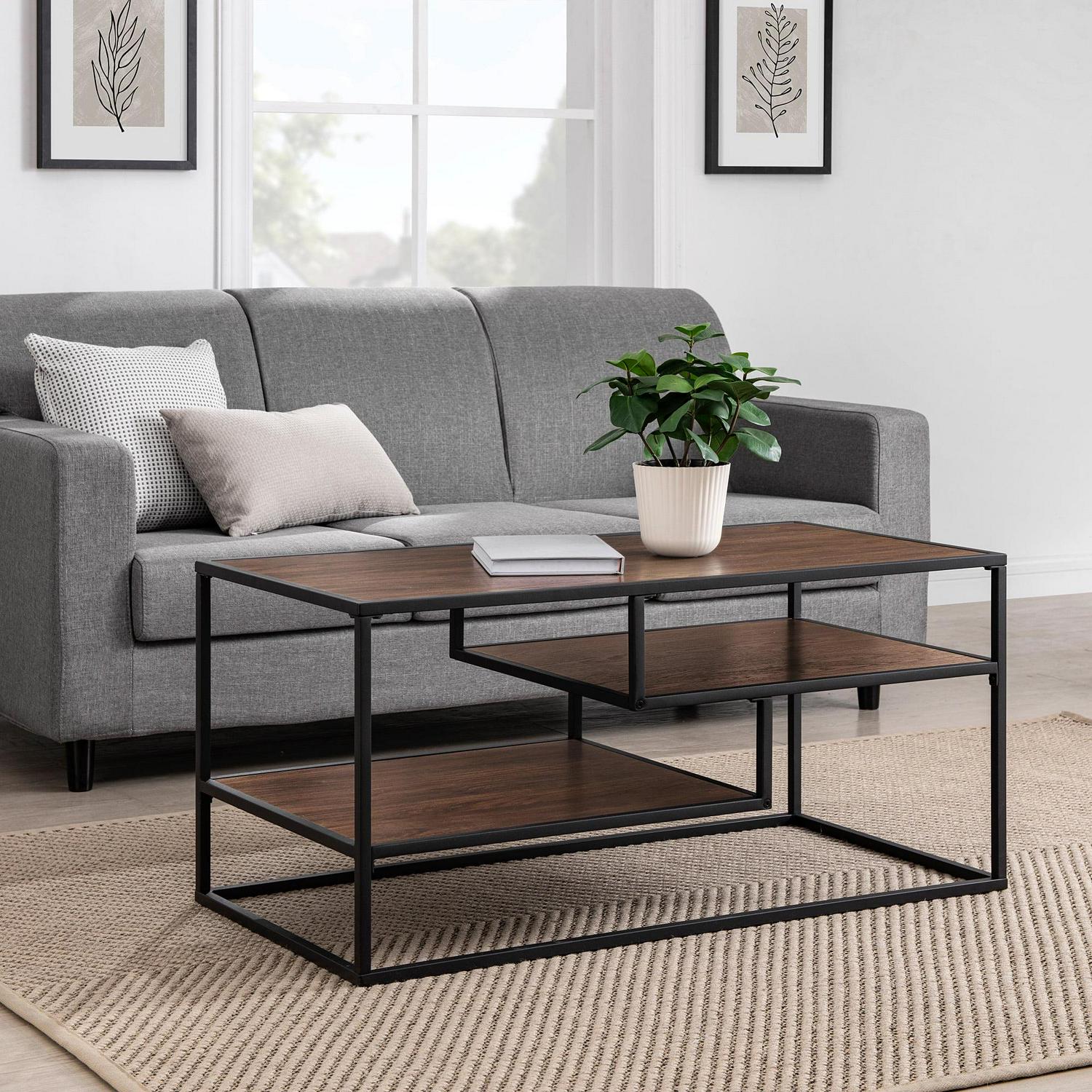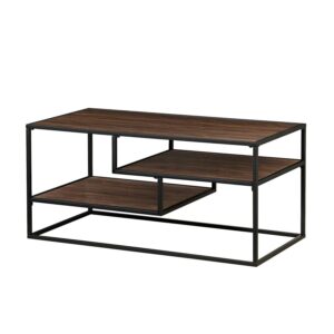 Walker Edison Contemporary Wood and Metal Tiered Coffee Table, Dark Walnut