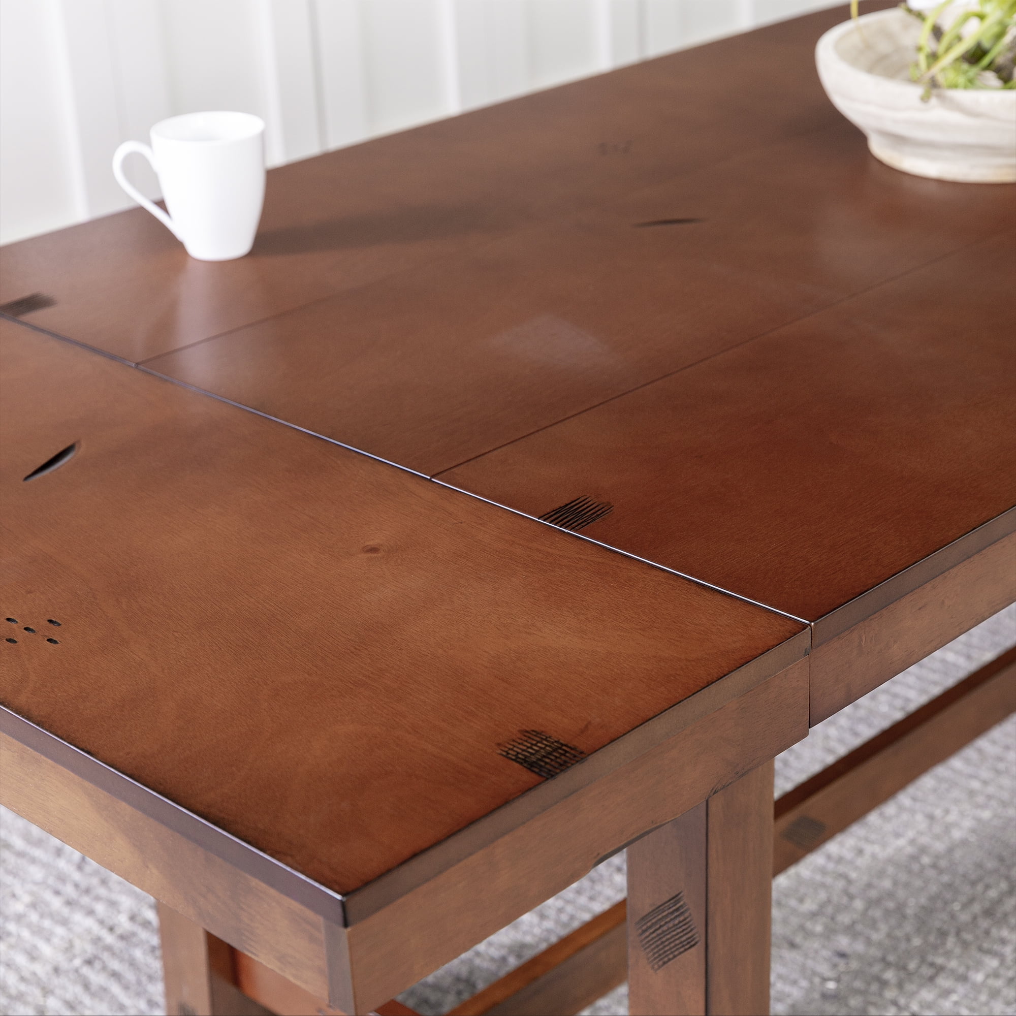 Walker Edison Country Expandable Dining Table, Dark Oak