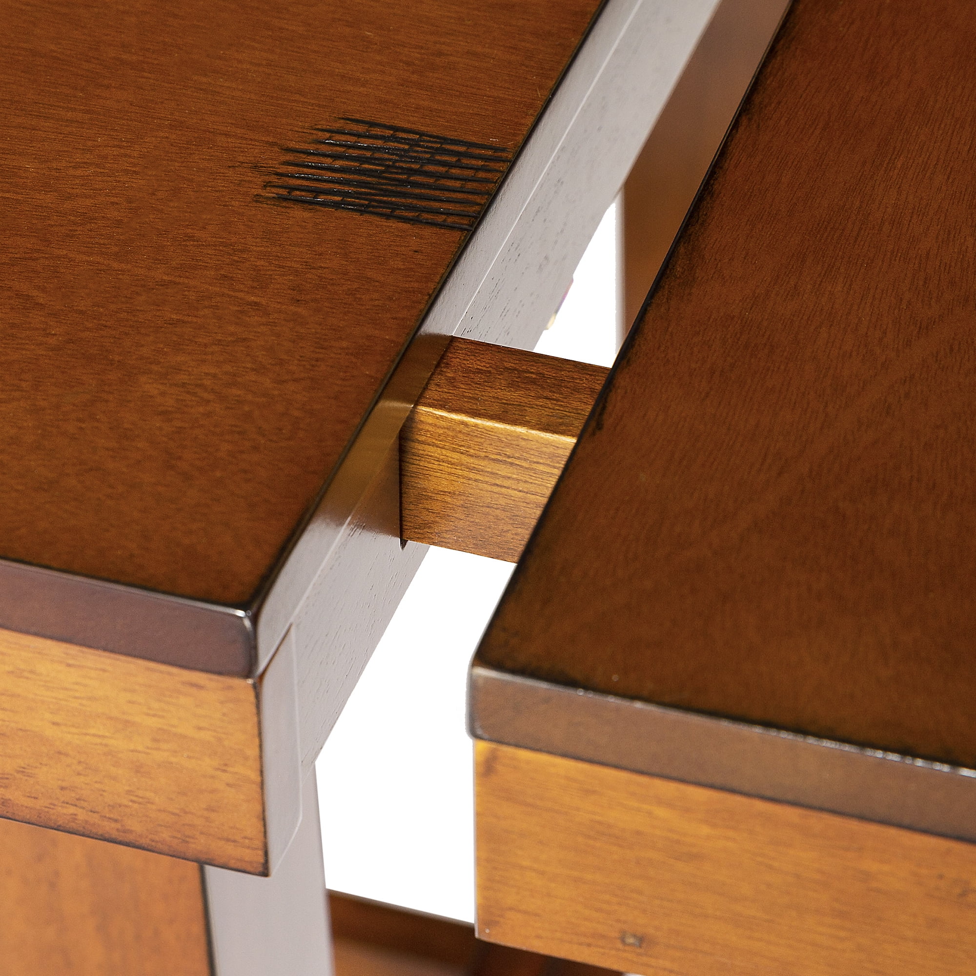 Traditional dining table Ideal for your kitchen or dining room Made of warp-resistant MDF and wood veneer Rich, dark oak finish Includes two removable end leaves to save space when needed Distressed details provide a rustic feel Ships in 1 box Assembly is required