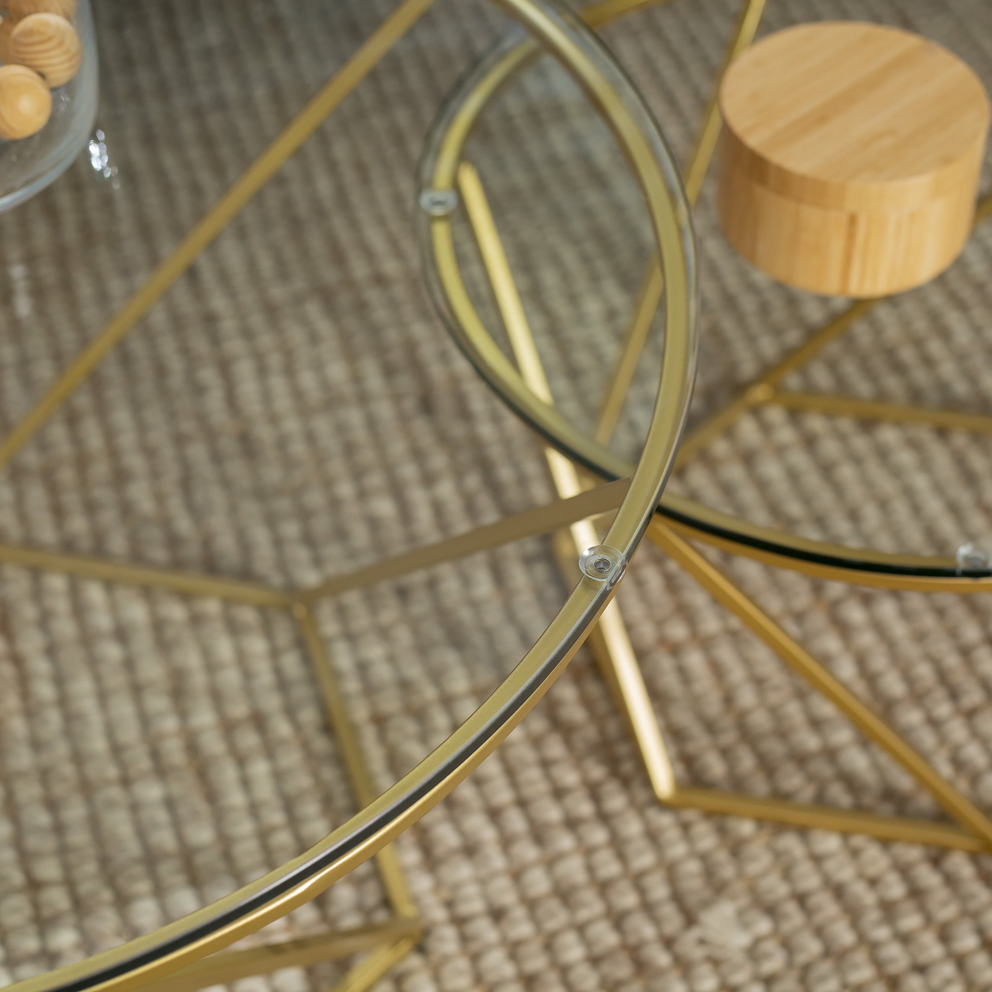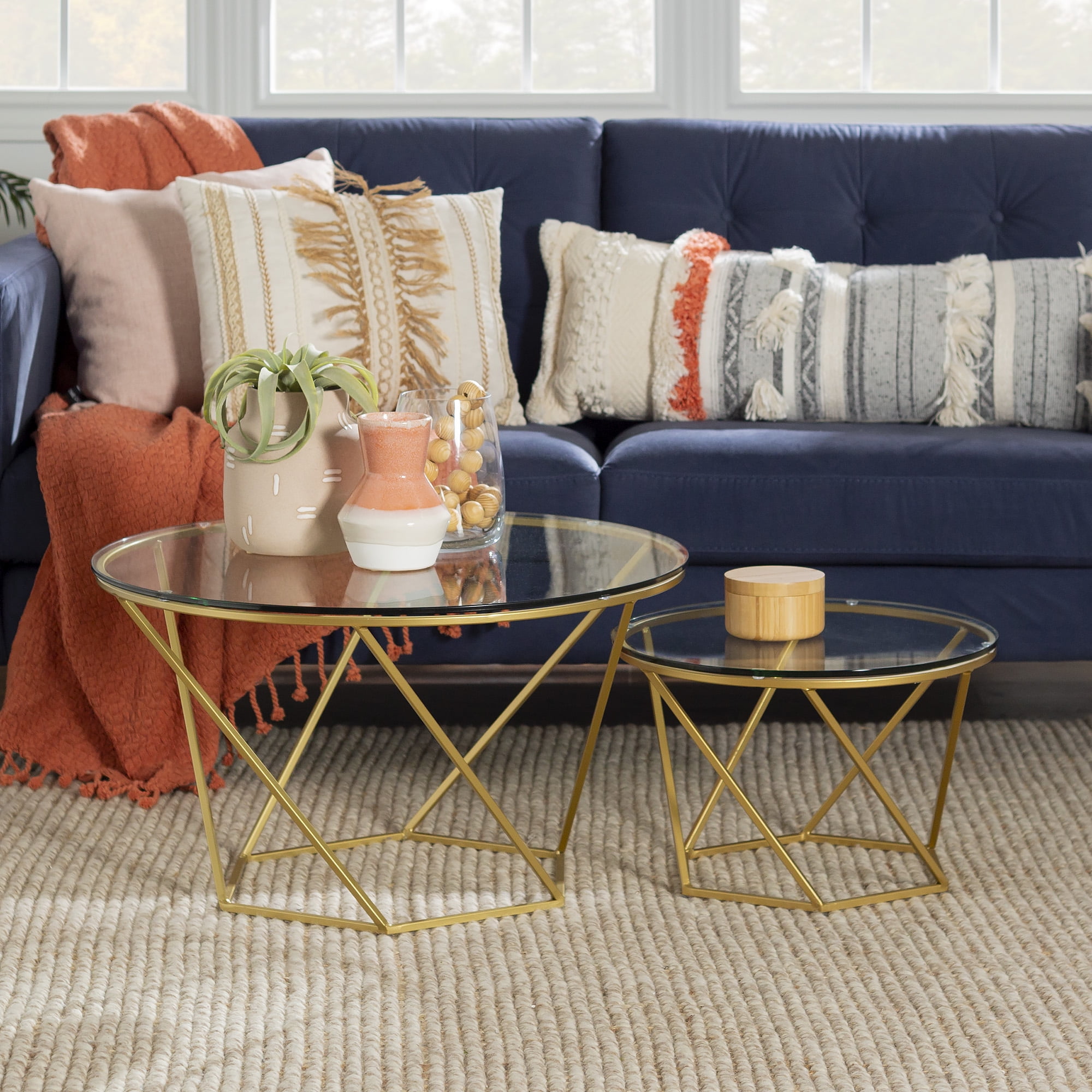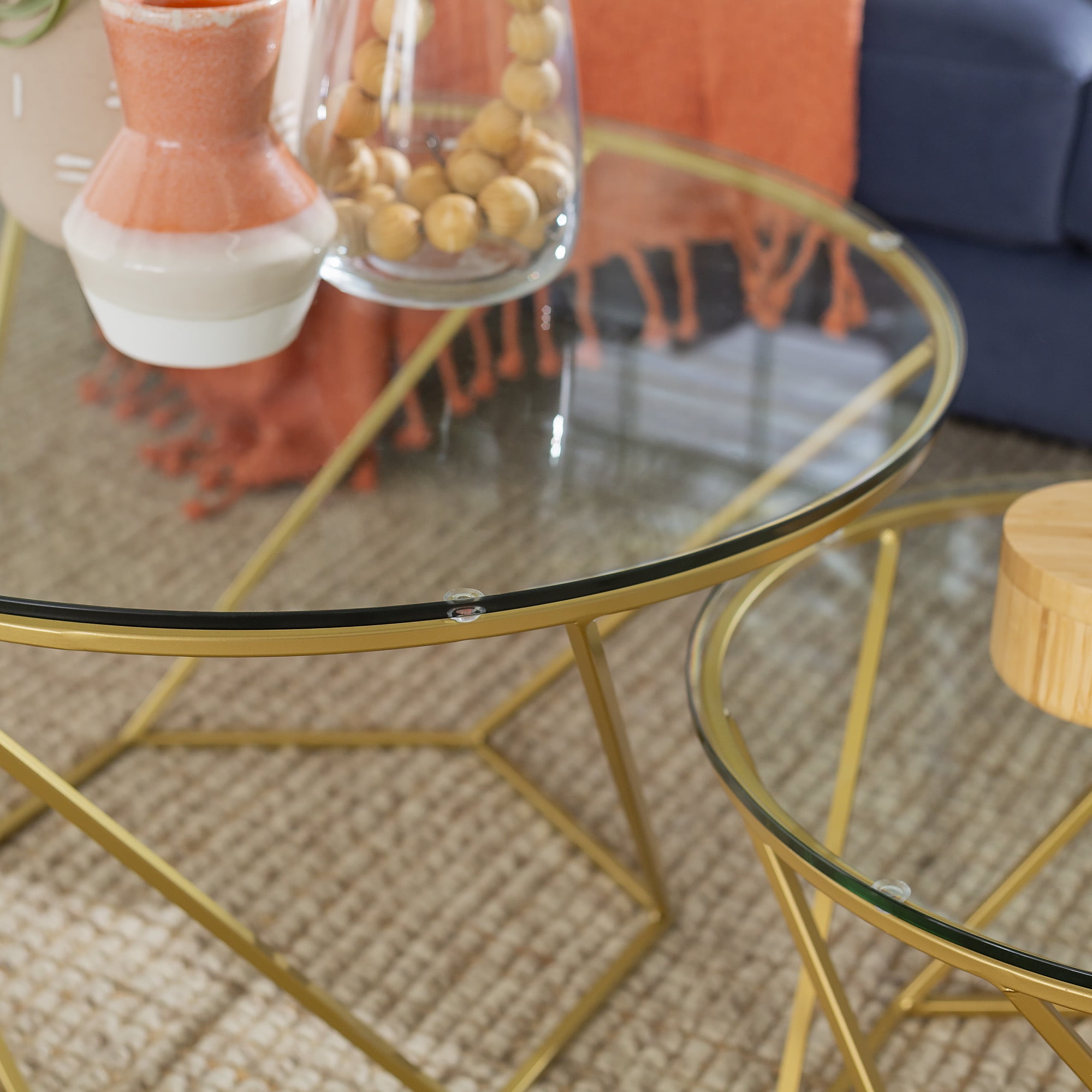 Walker Edison Eloise Geometric Nesting End Tables, Glass/Gold, Set of 2