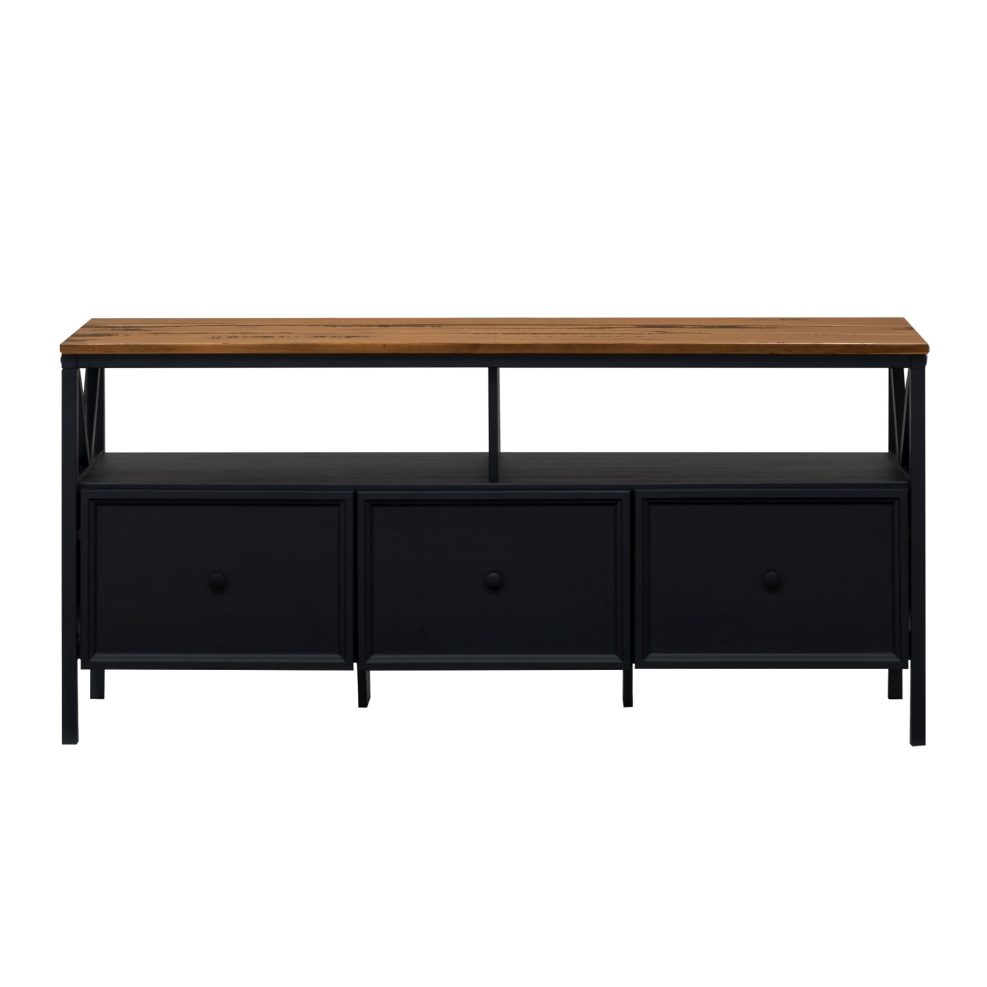 Walker Edison Farmhouse 3 Drawer 60″ TV Stand, Rustic Oak/Black