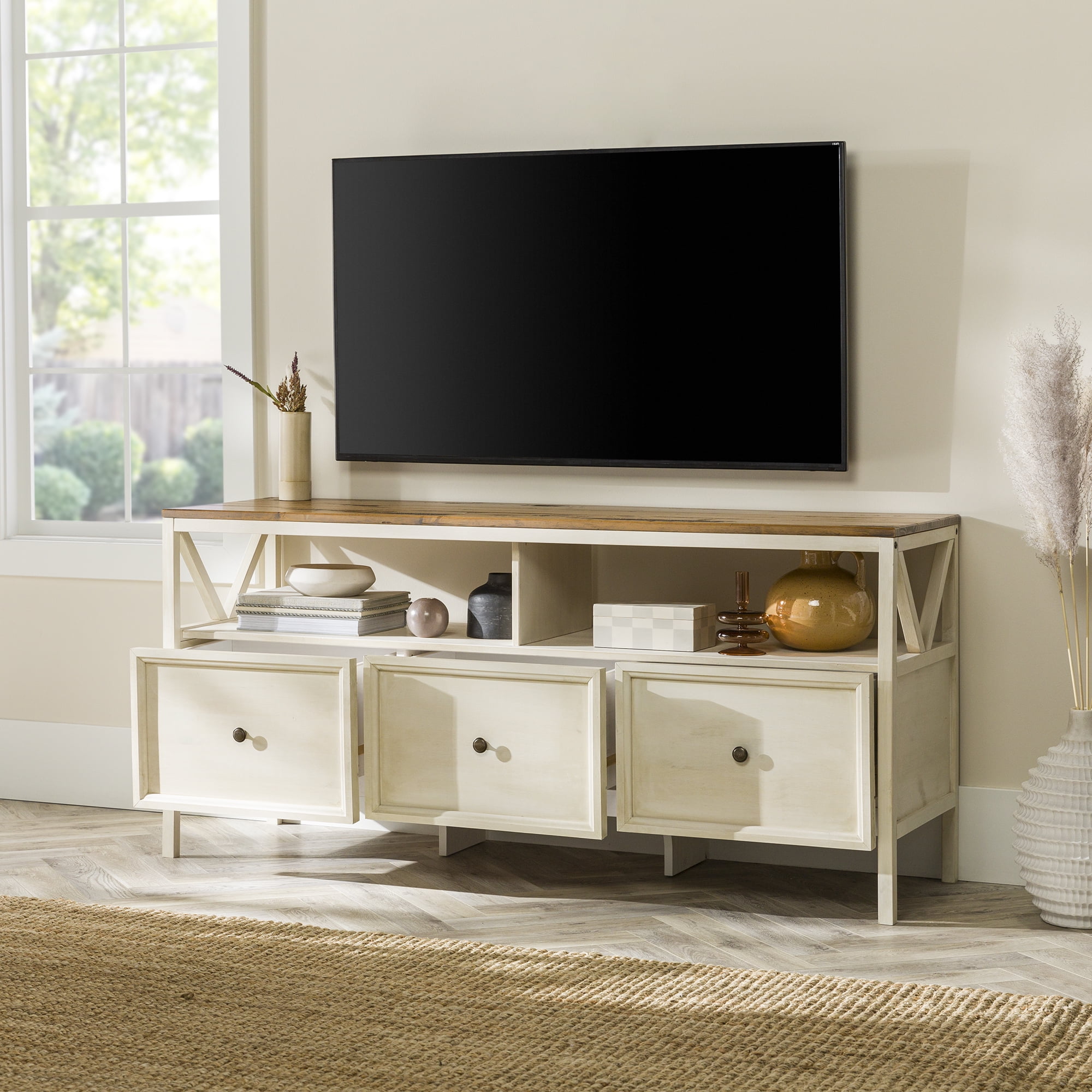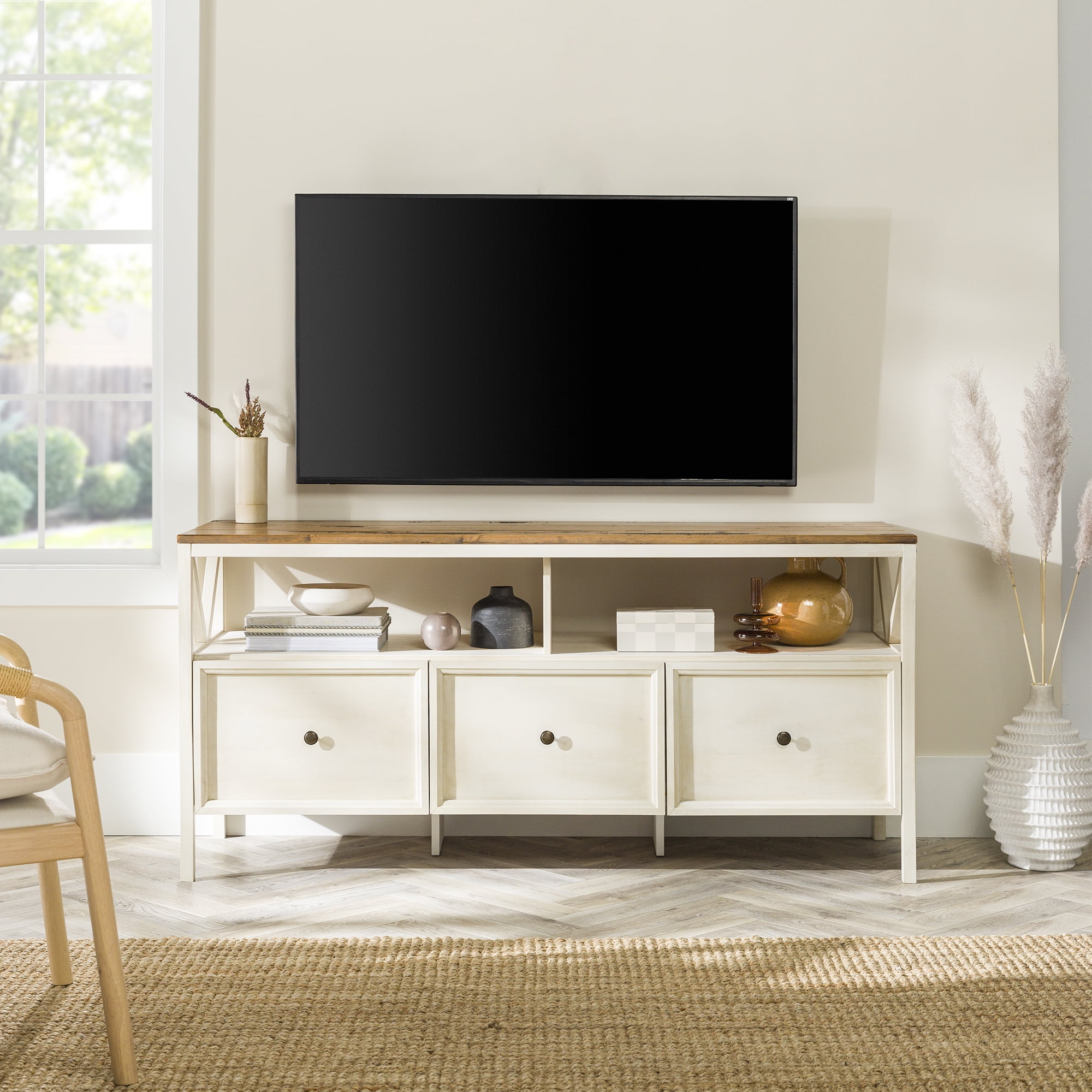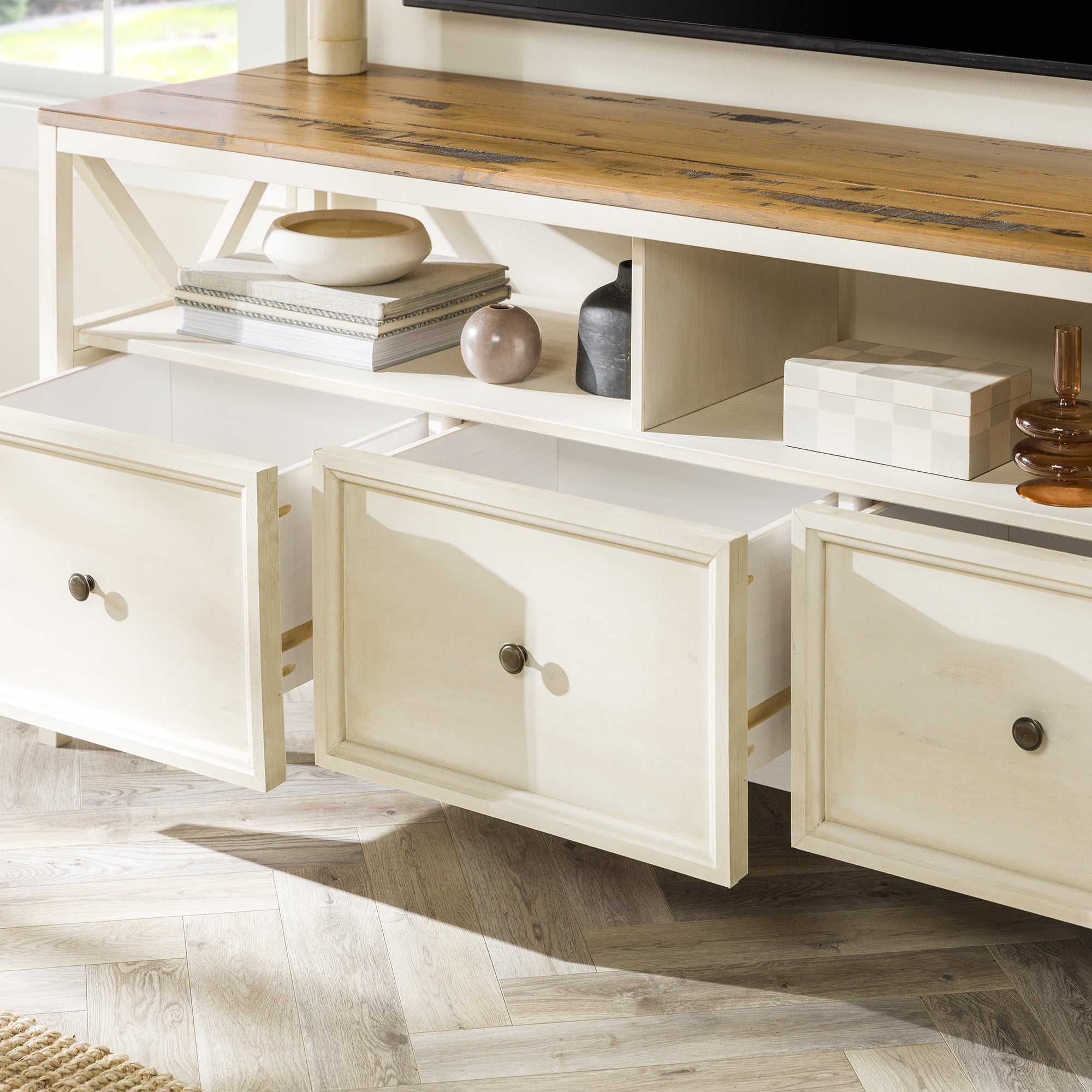 Walker Edison Farmhouse 3 Drawer 60″ TV Stand, Rustic Oak/White Wash
