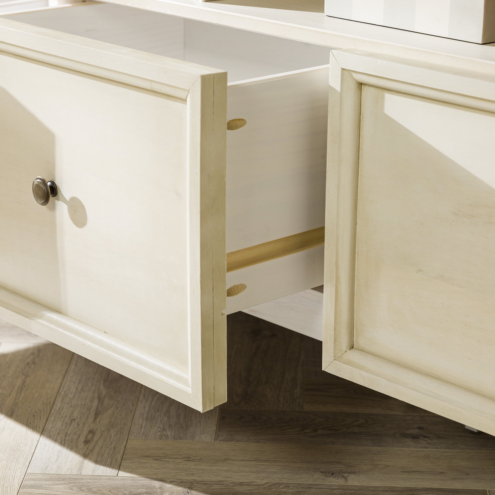 Walker Edison 58″ Transitional 2-Door Windowpane TV Stand for TVs up to 65”, Ivory Oak