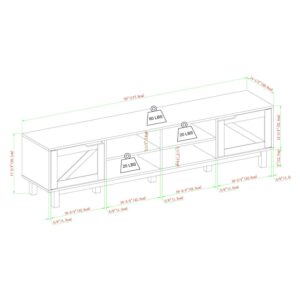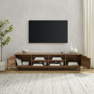 Bring some country charm to your entertainment space with the Manor Part Rustic Open and Closed Storage TV Stand for TVs up to 80 . This stylish stand offers four open cubbies so you can display your favorite décor and media. In addition, two cabinets behind hinged doors provide closed storage space for streaming devices or your DVD collection. Use the included cable management ports to keep all your tech looking neat and tidy. This functional piece has adjustable feet so you can achieve the perfect fit. Give your home the perfect upgrade with a spacious stand that supports movie night with style.