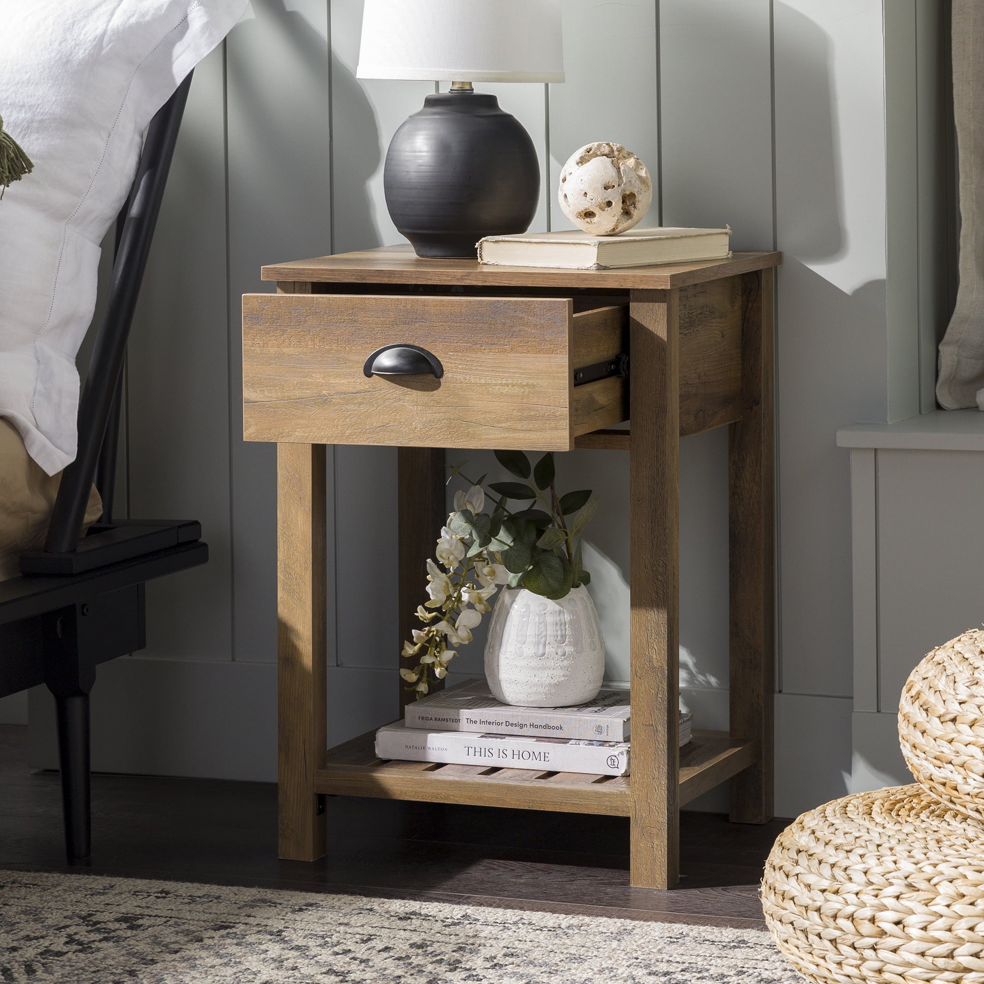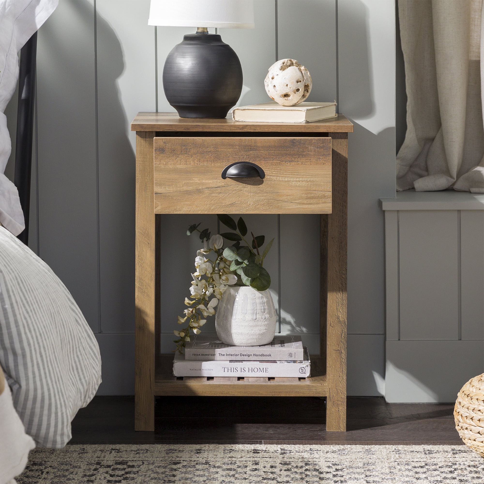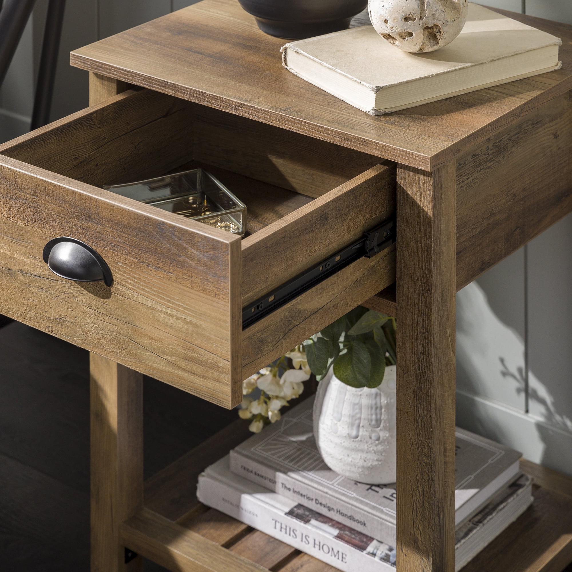 Walker Edison Farmhouse Single Drawer Open Shelf End Table, Reclaimed Barnwood