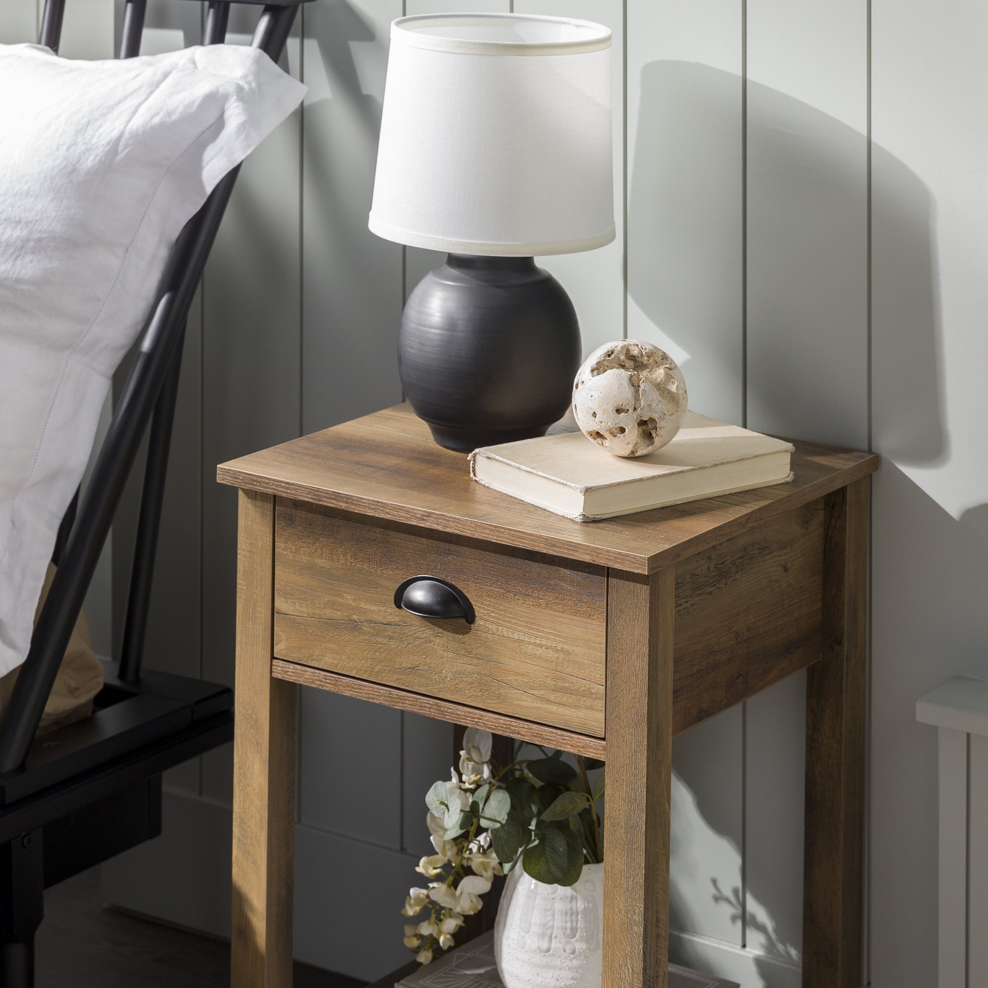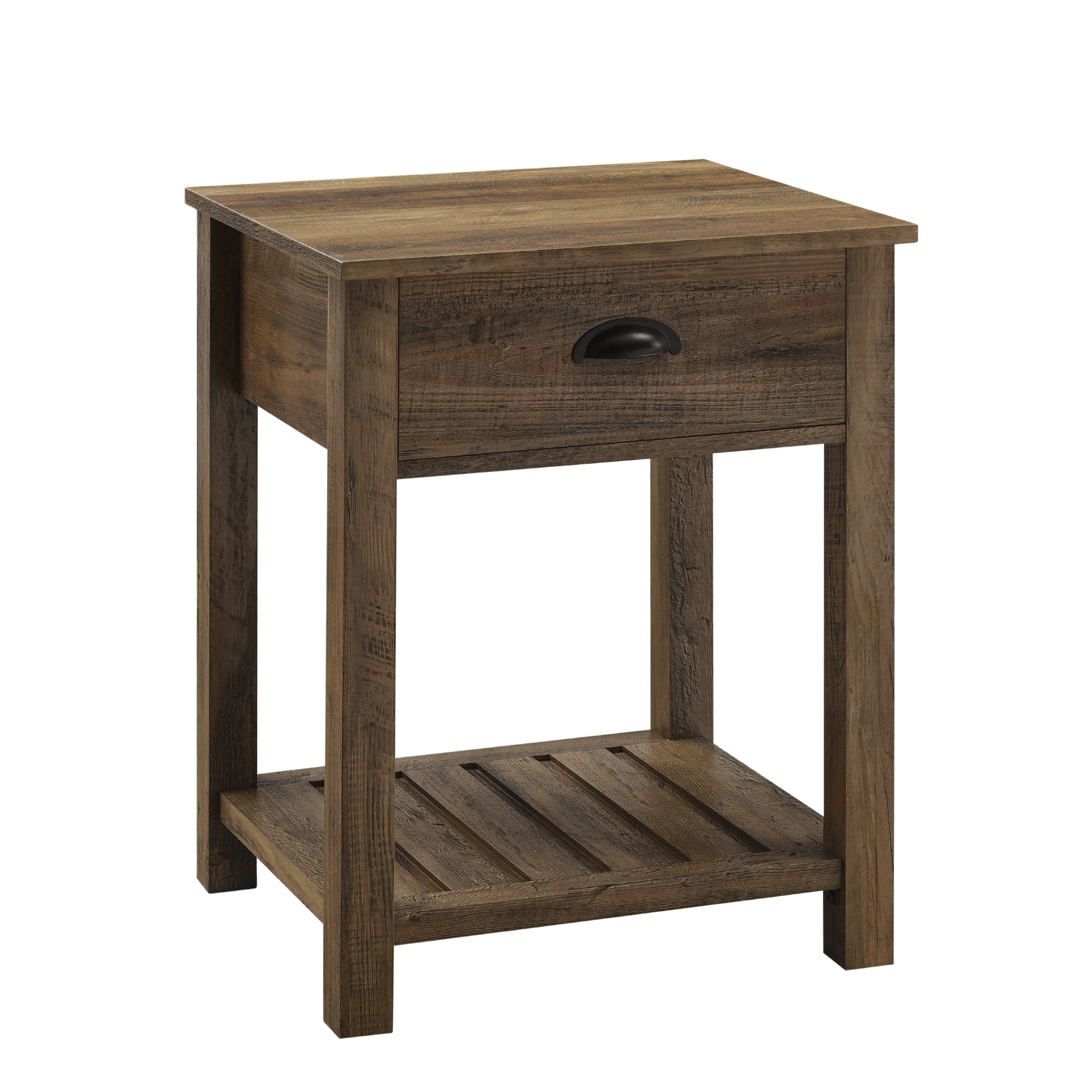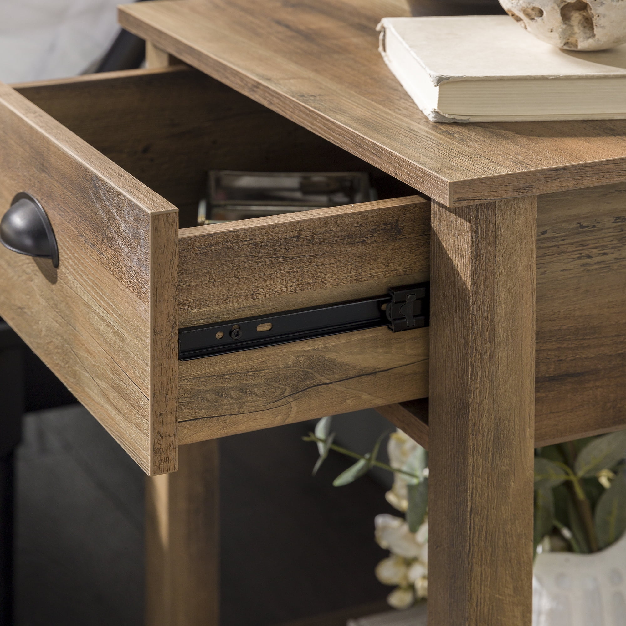 Walker Edison Farmhouse Single Drawer Open Shelf End Table, Reclaimed Barnwood