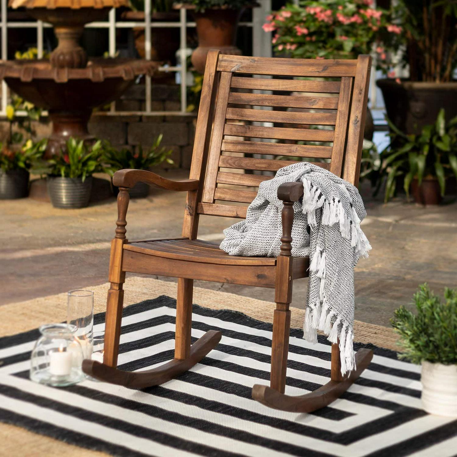 Walker Edison Furniture OWRCDB Solid Acacia Wood Rocking Patio Chair, Dark Brown