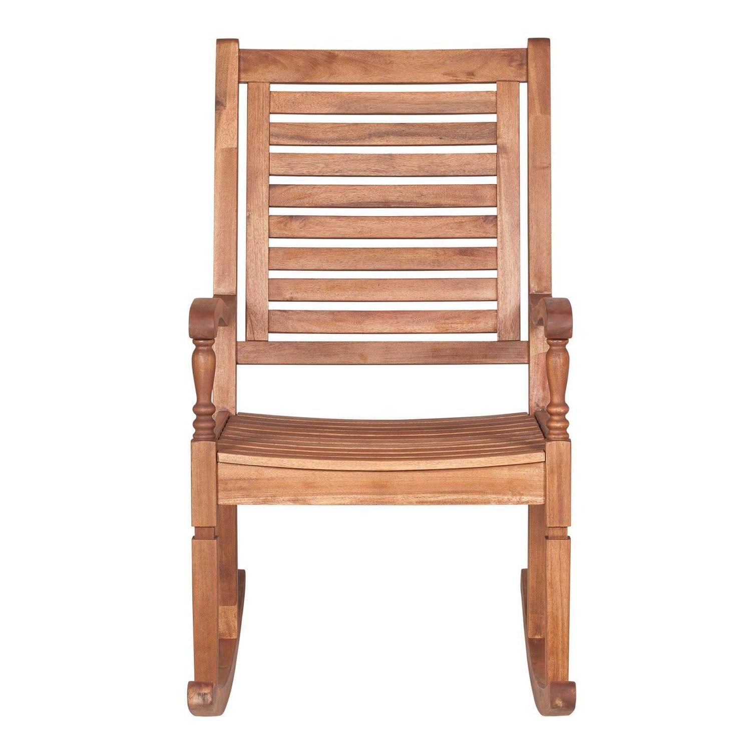 There s not much that’s more soothing than peacefully rocking in the classically beautiful Walker Edison Acacia Wood Rocking Patio Chair. This lovely rocking chair is constructed of solid acacia wood, and is available in your choice of finish. With its traditional design, including a slat back and, fluted arm bars, and a slightly curved seat, the Walker Edison Acacia Wood Rocking Patio Chair is simple, yet sophisticated. The construction of the chair makes it resistant to a variety of outdoor elements, so you ll be rocking in sweet breezes and sunshine for years to come.