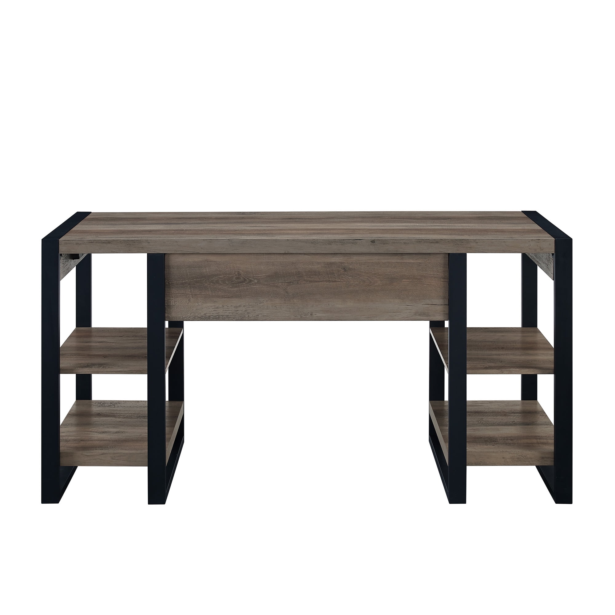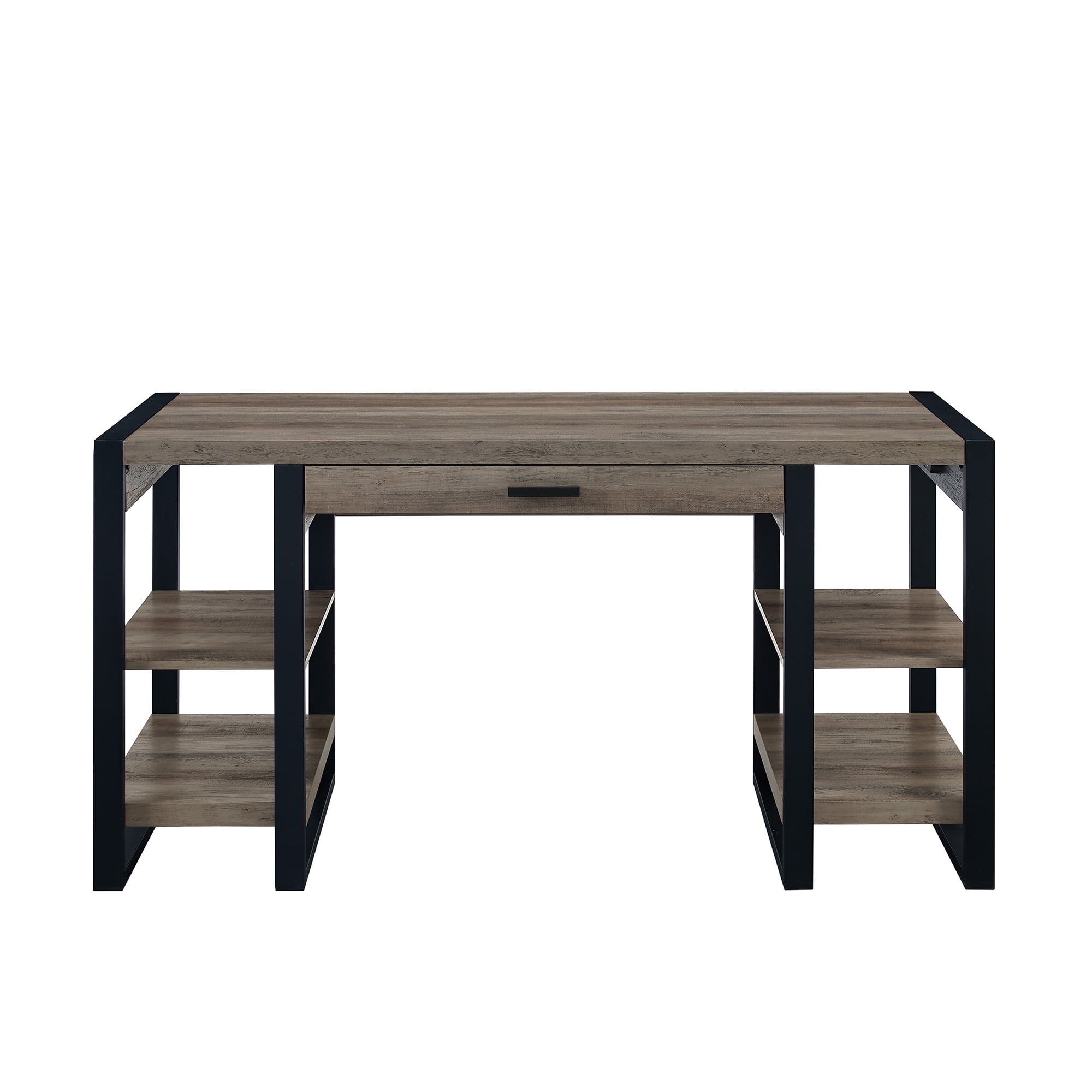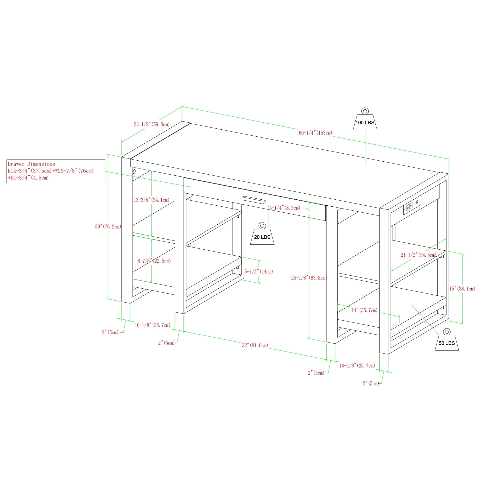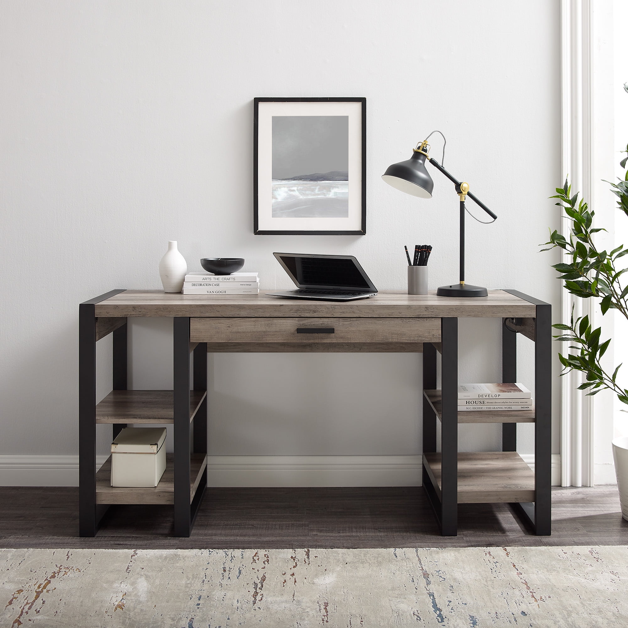 A computer desk that has both function and style, this industrial desk from Walker Edison many features to coordinate well with your current home decor and storage needs. The warp-resistant MDF wood design and powder coated legs look rich for a stylish presence to your home office or bedroom. Featuring a pull-out drawer for your keyboard or storing small items like pens and paper, with side shelves giving room for larger items like books and decor. The side of this computer desk has a power supply provided with a USB port and AC plug-in so that you can easily charge your phone and laptop.