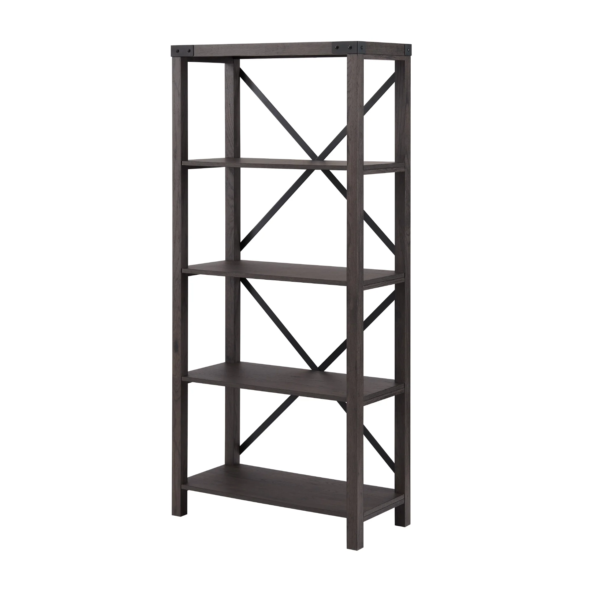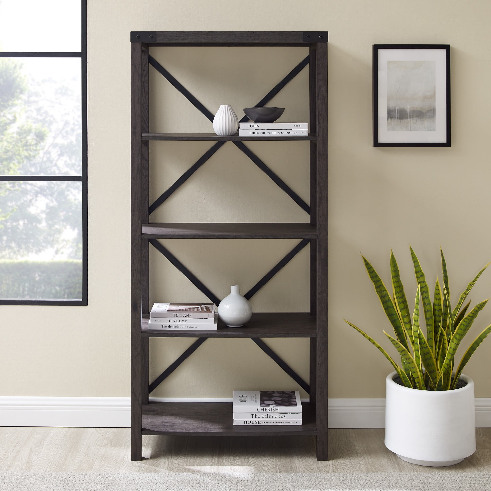 Walker Edison Industrial Farmhouse 4 Shelf Bookshelf, Sable Grey