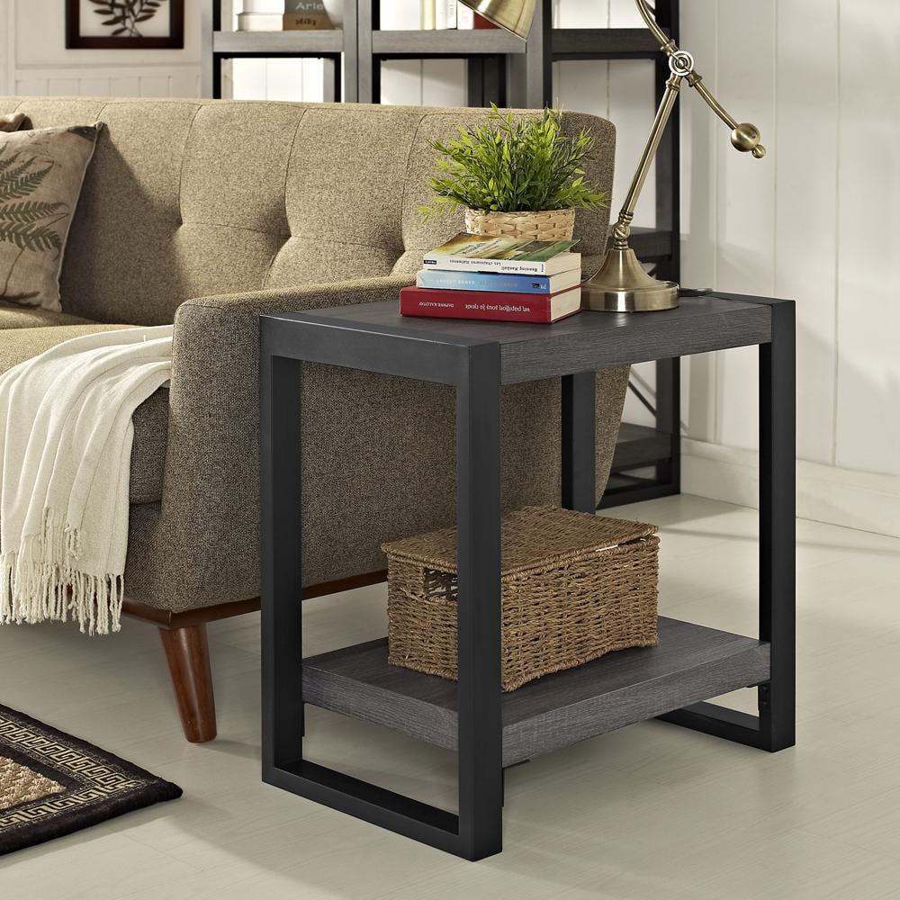 Walker Edison Industrial Wood and Metal End Table – Charcoal