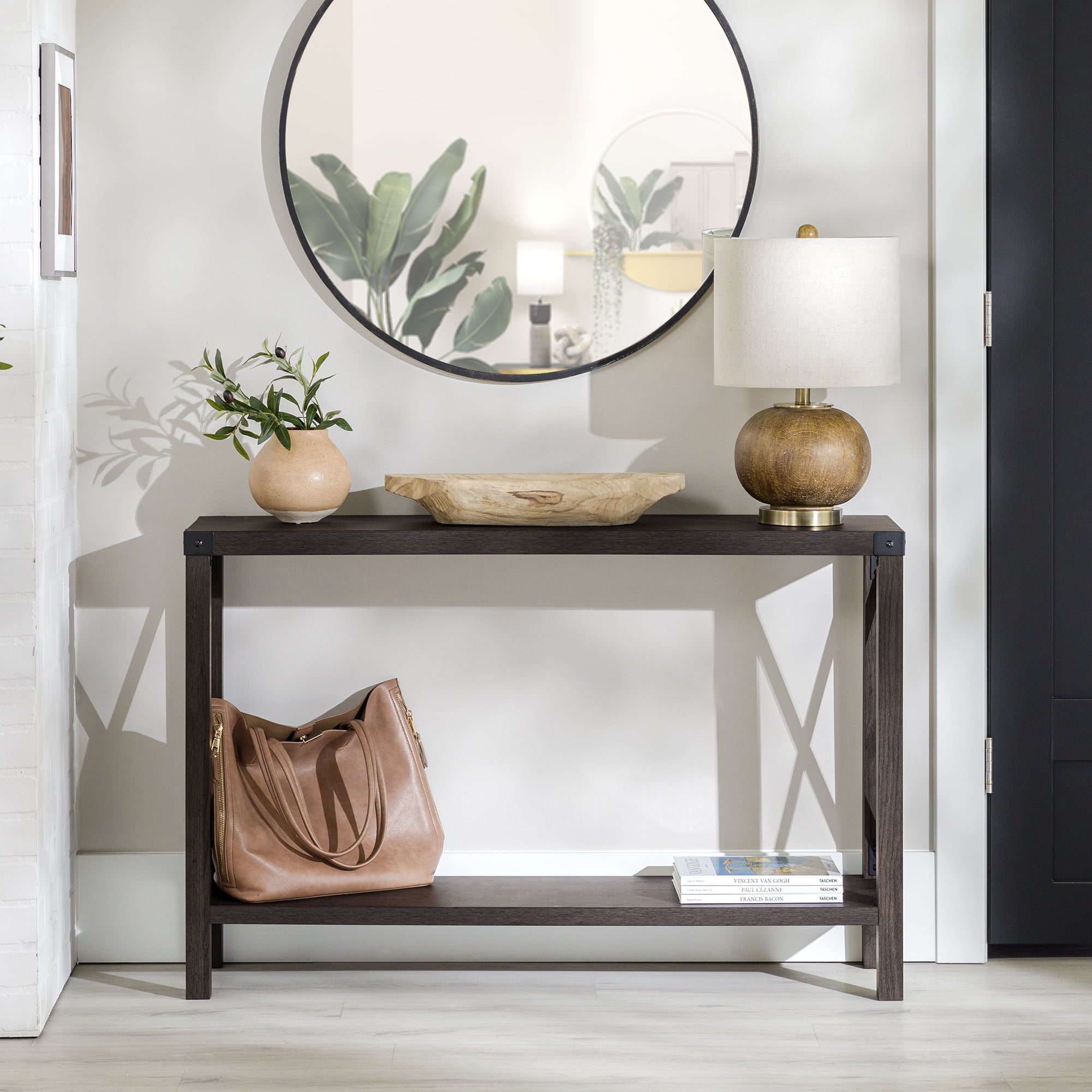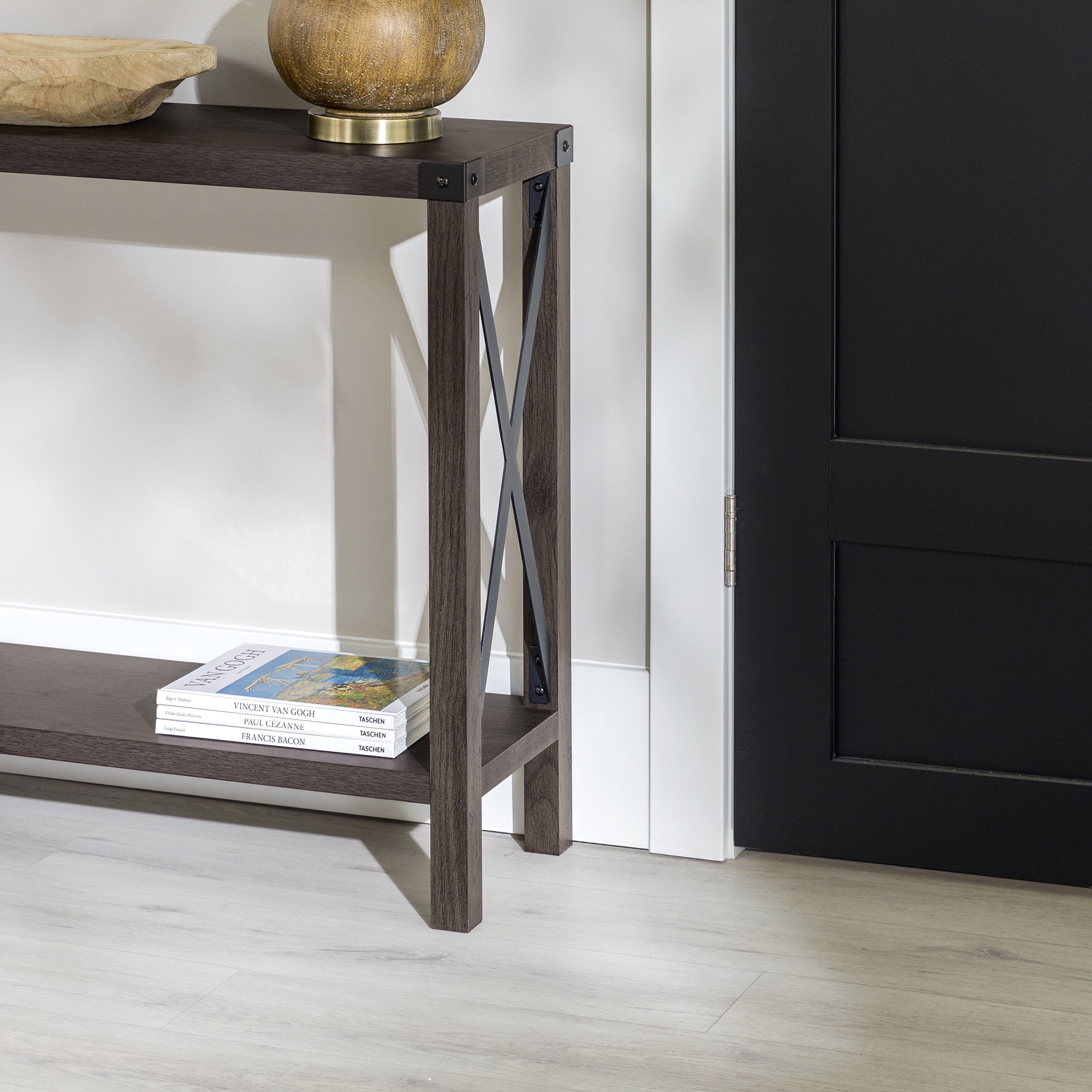 Walker Edison Magnolia Metal X Console Table, Sable
