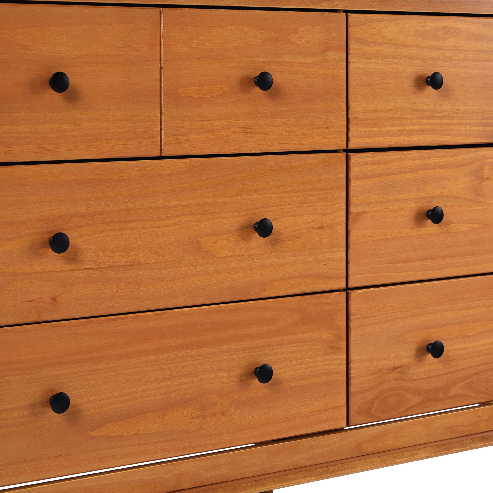 This roomy 6-drawer wood dresser by Walker Edison gives you just the space you need to fit your clothing pieces in, while also having a classic and simple style. With its minimalist style, it easily pairs with a variety of other styles including transitional and modern, so that you can incorporate it into your room. Fashioned of solid pine and high-grade MDF responsibly harvested from renewable forests for a sustainable, sturdy design, with simple circular drawer handles giving a subtle accent to the piece. This mid century modern dresser features six drawers for anything from your tees to your jeans or your socks and underwear. The tapered legs add to the classic style, while also making it easier to clean the floor space underneath. This dresser will be a practical and stylish addition to your bedroom.