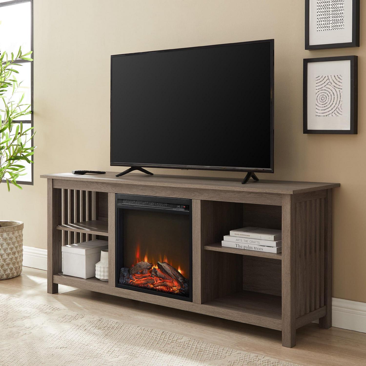 Walker Edison Mission Electric Fireplace TV Stand for TVs up to 65a , Driftwood