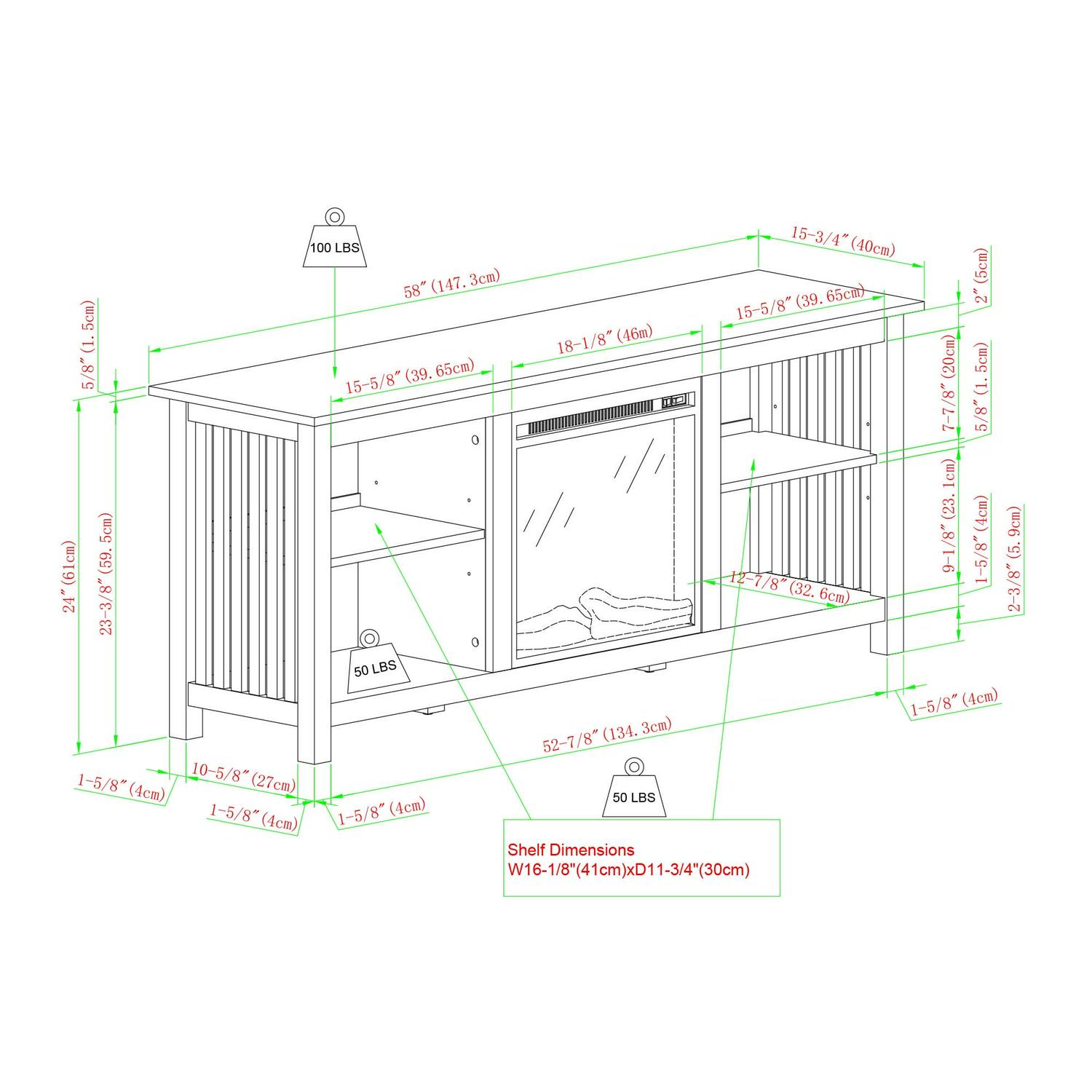 Add some warmth to any home with the simple, mission-style electric fireplace by Walker Edison. Featuring spacious and adjustable shelving to display and store your media accessories, this stand offers the perfect blend of style and functionality. The paneled sides add a touch of modern elegance. The electric fireplace unit offers faux flames and heat that can be controlled by a flip of a switch. The versatile design allows the unit to fit right in with mission, modern, and traditional aesthetics. With a minimal silhouette and spacious storage options, this piece sure to remain an entertainment classic for years to come.