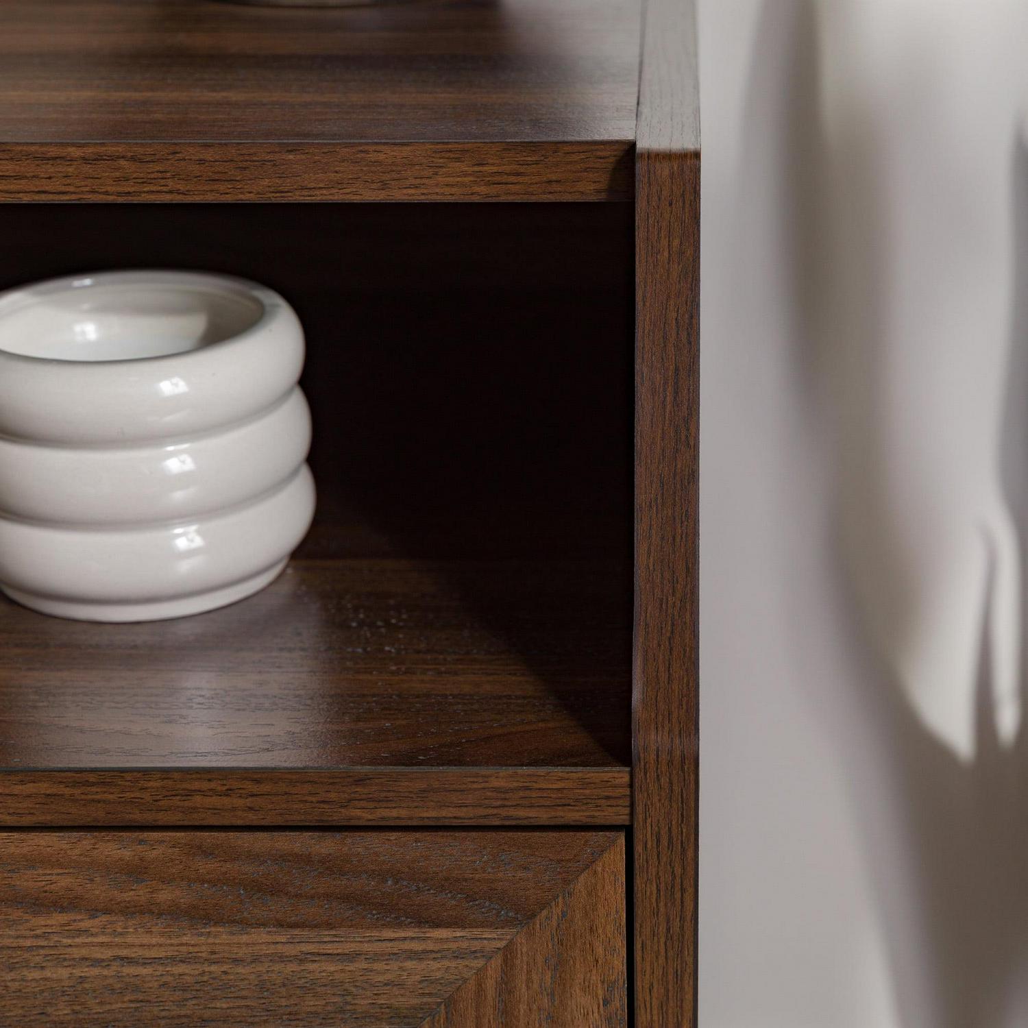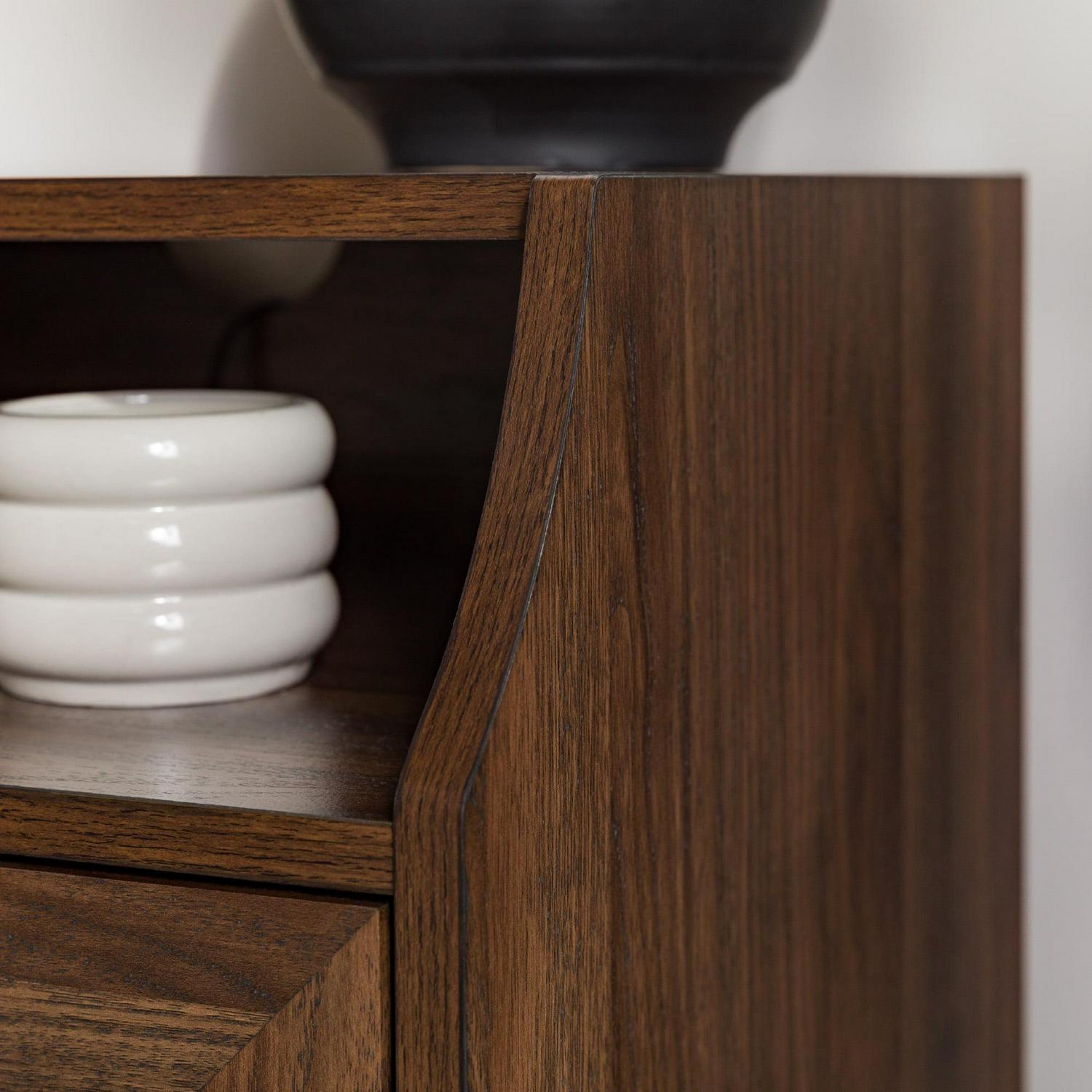 - Dark walnut finish