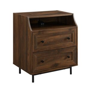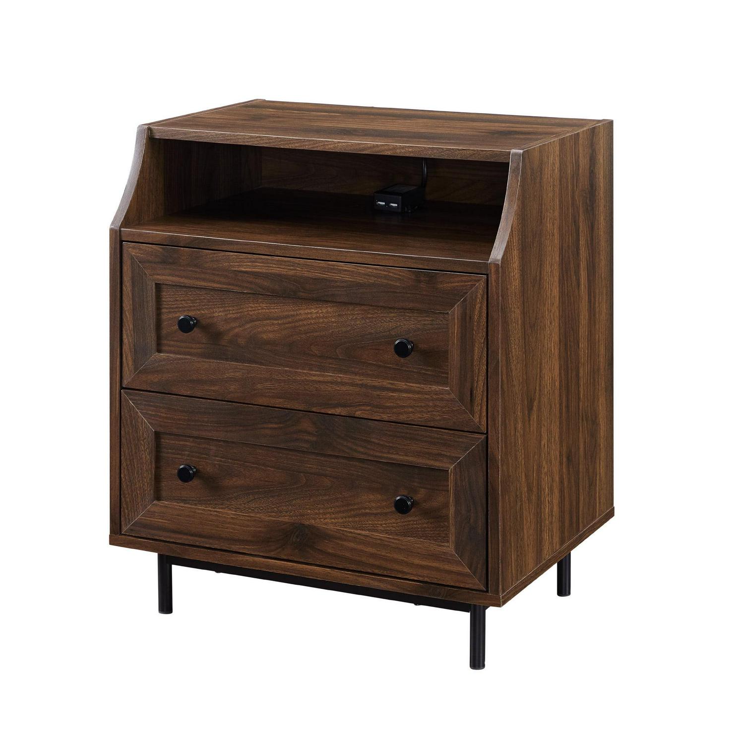 Walker Edison Modern 2 Drawer Nightstand with USB Port, Dark Walnut
