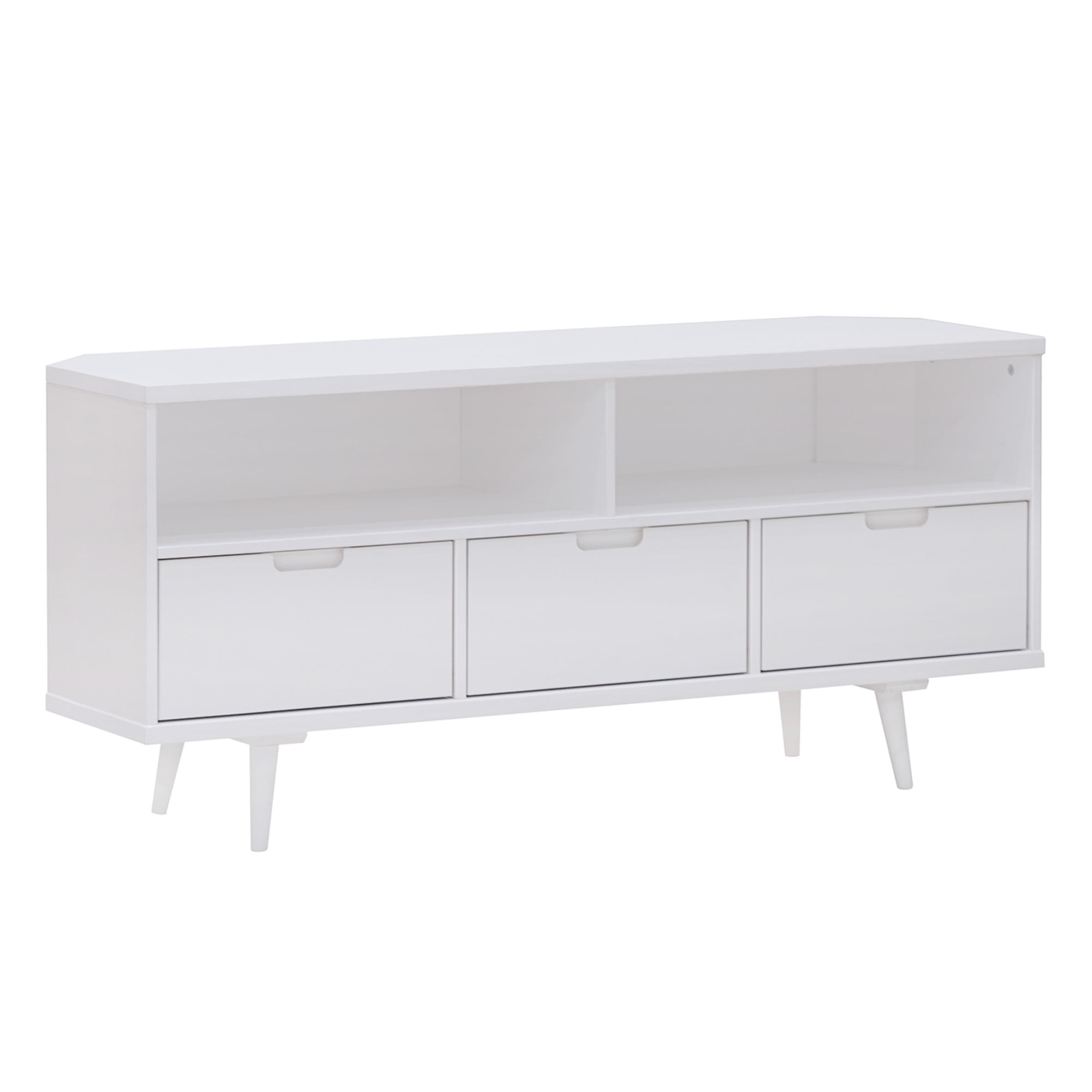 Walker Edison Modern 3-Drawer Solid Wood Corner TV Stand, White