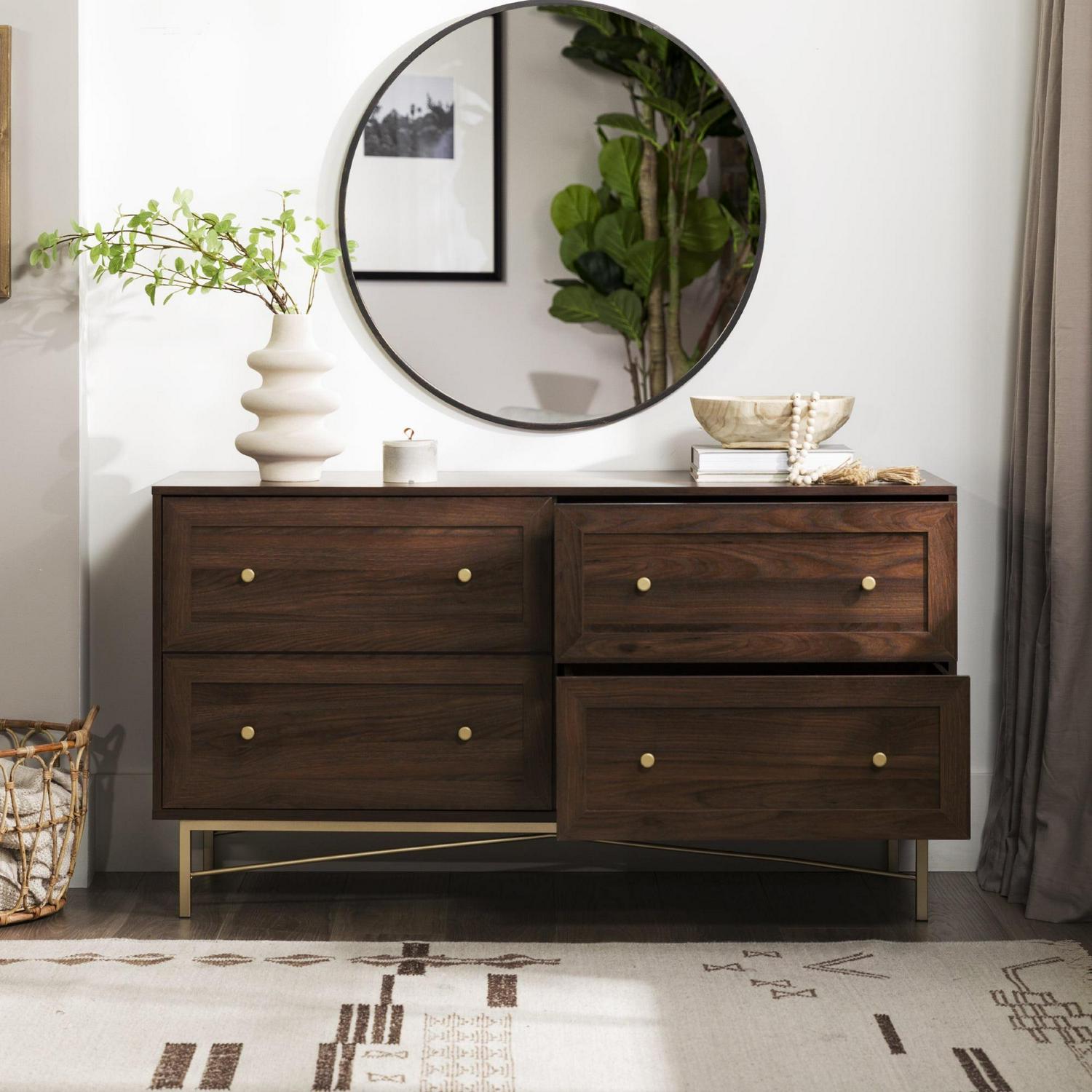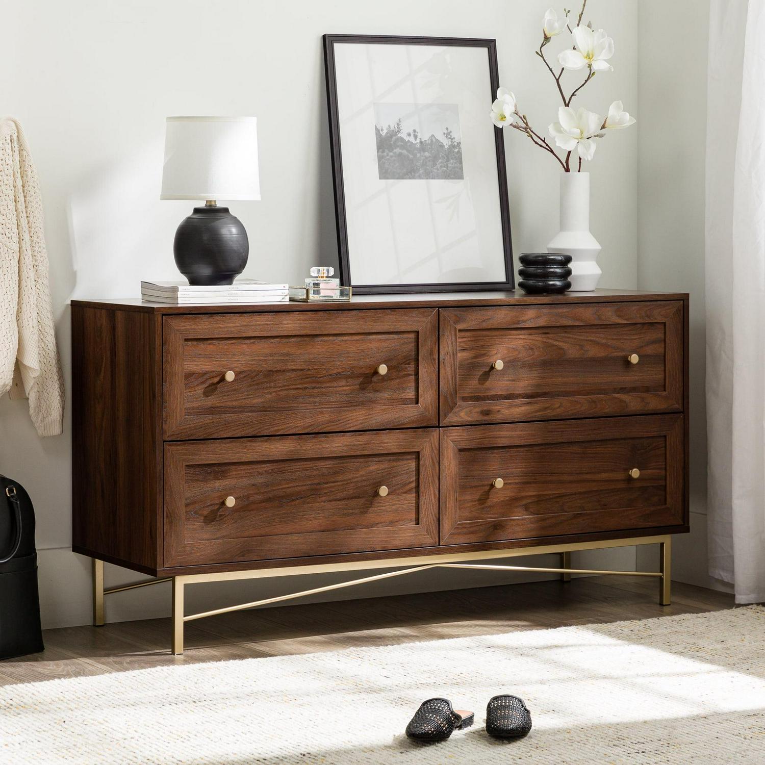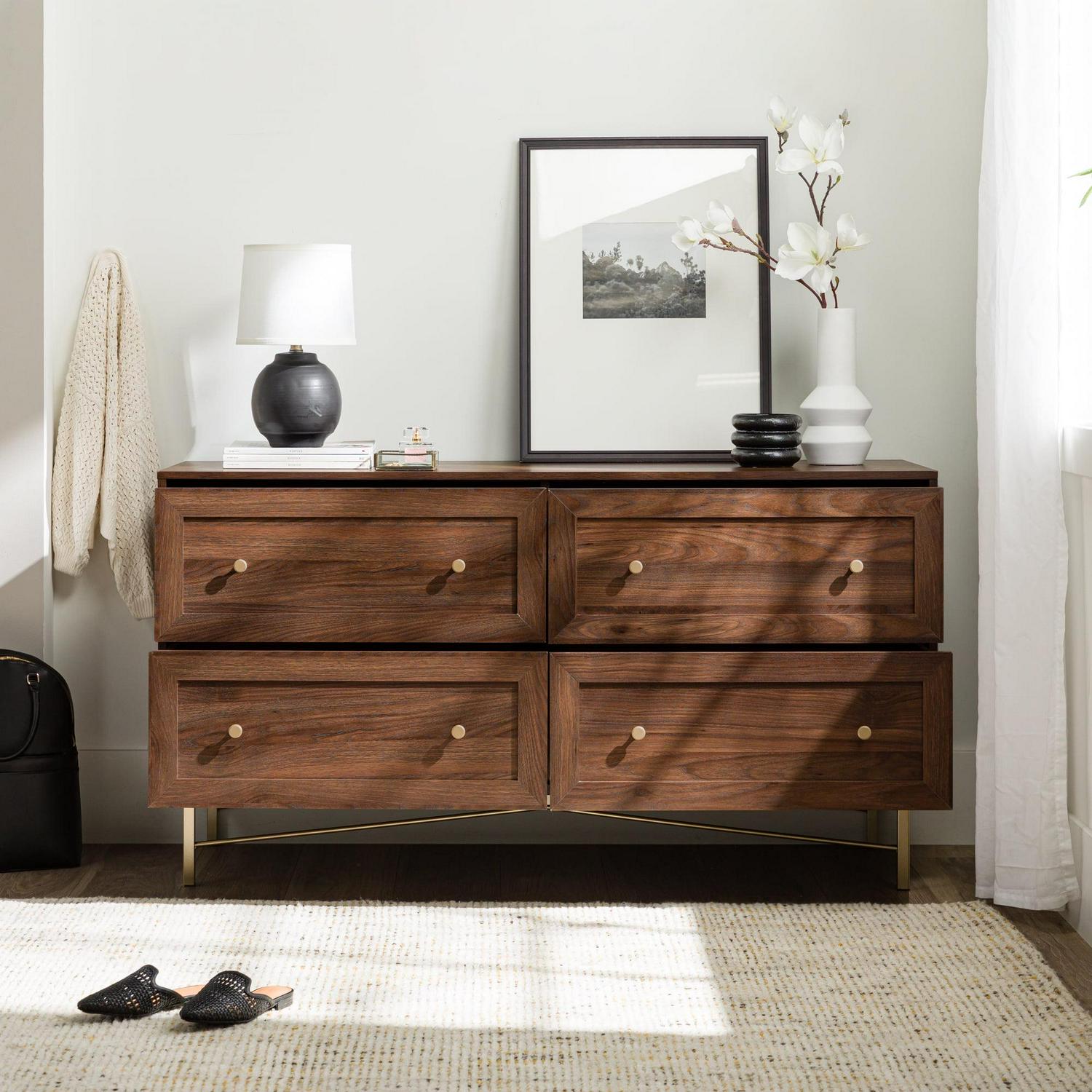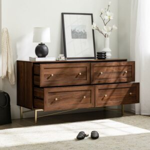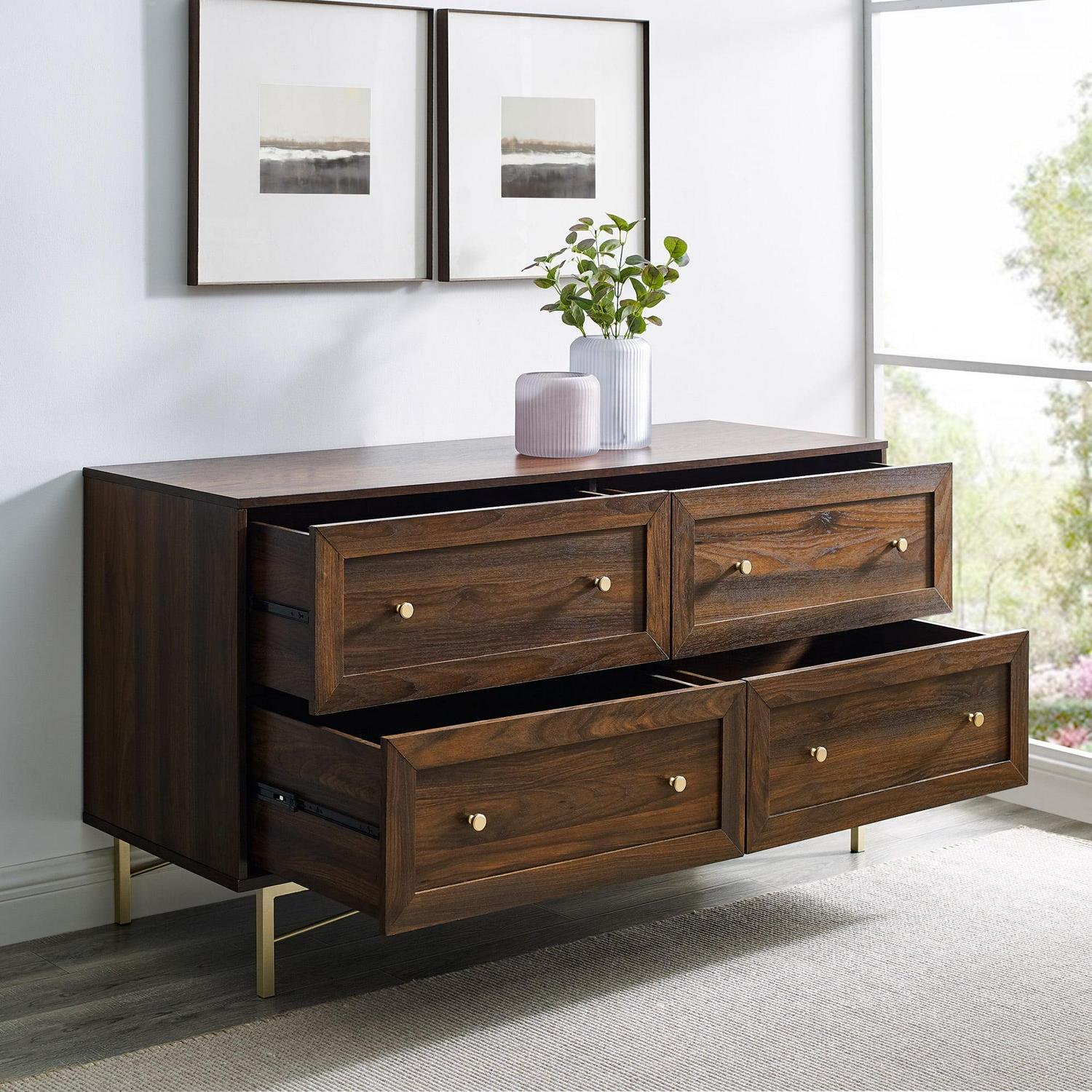 Walker Edison Modern 4 Drawer Dresser, Dark Walnut
