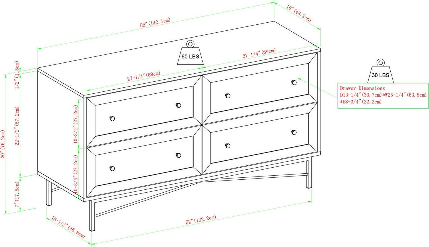 - Assembled Product Dimensions (L x W x H): 56.00 x 19.00 x 30.00 Inches