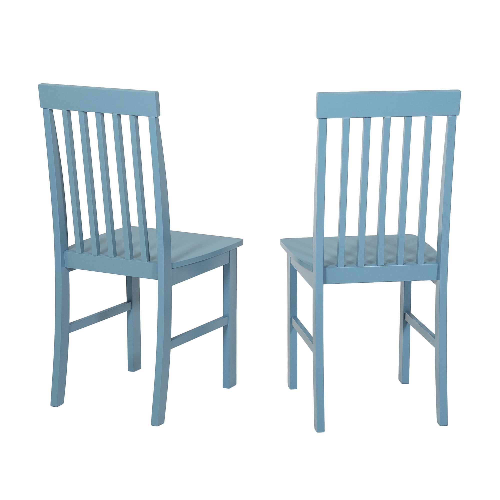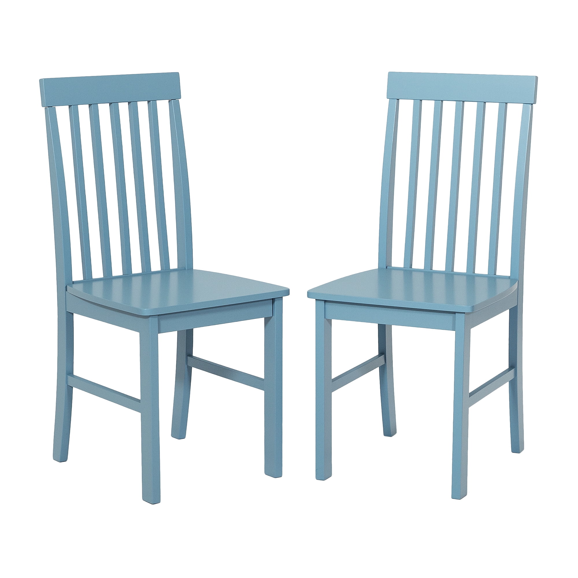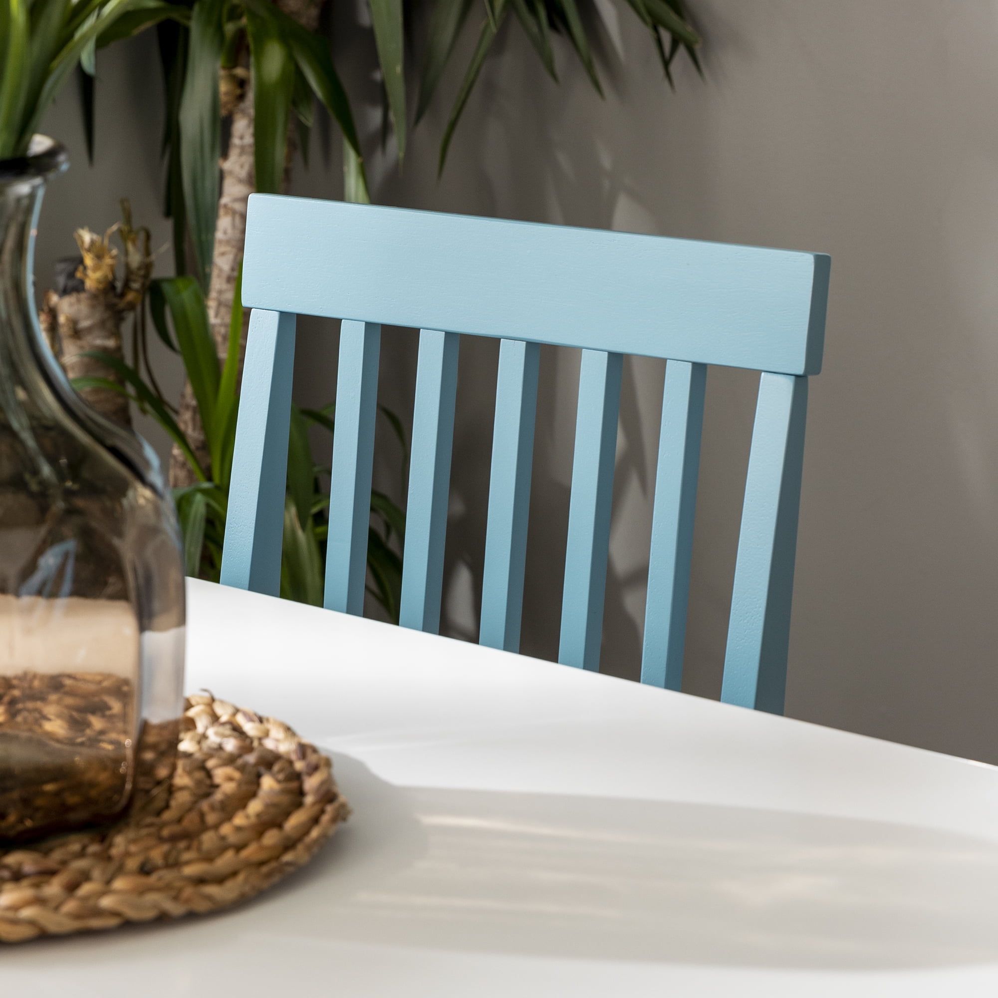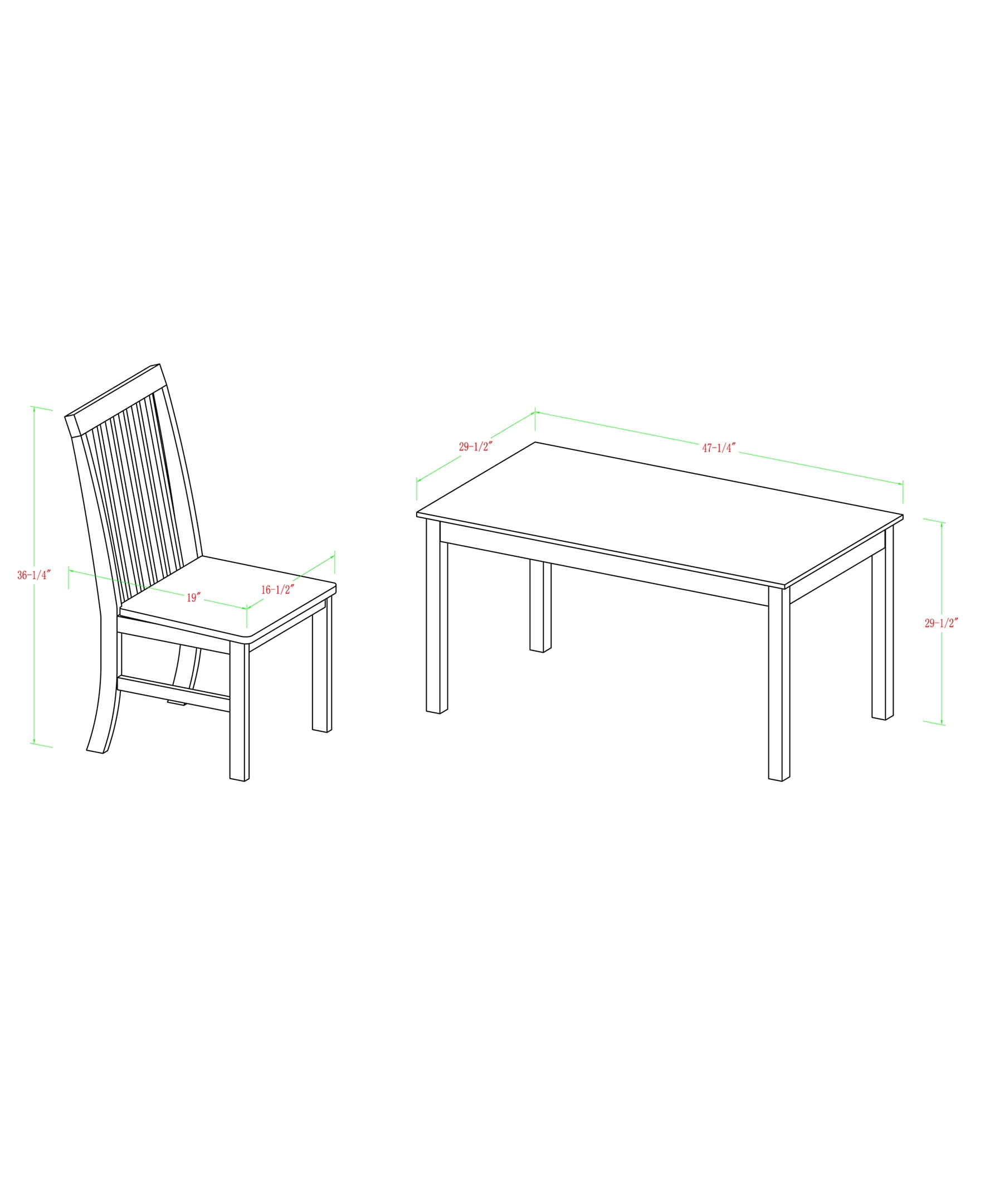 Modern farmhouse 5 piece dining set Slightly curved, spindle chair backrests Includes 4 chairs and 1 table Solid wood table and chairs Beautiful painted finish Rectangle tabletop great for kitchens or game rooms Small-space living friendly Assembly is required