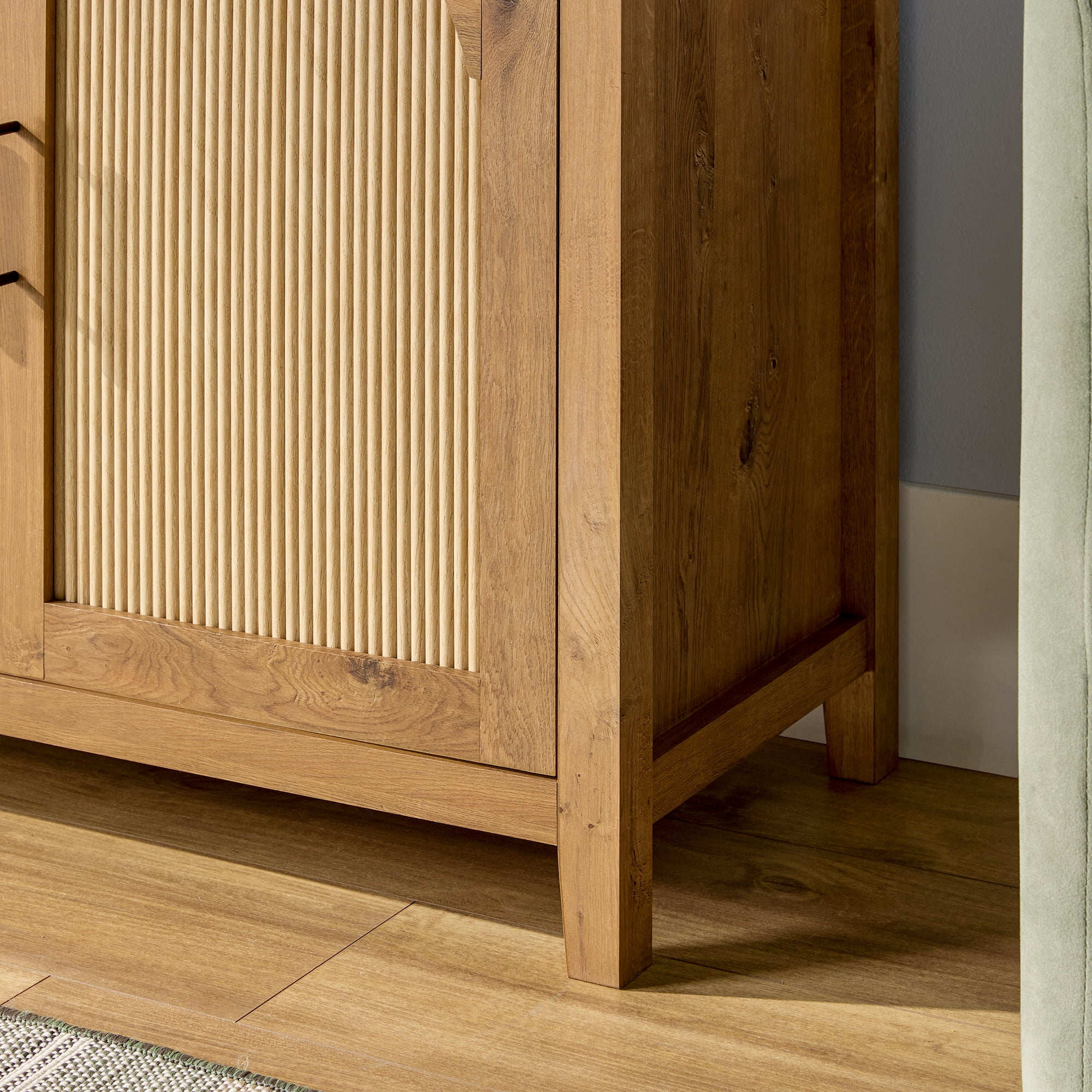 Walker Edison Modern 2-Shelf 70″ Sideboard with Reeded Arch Detailing, English Oak