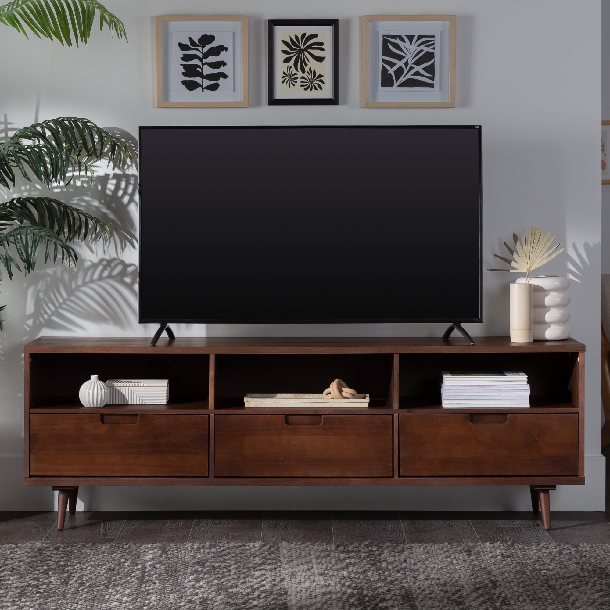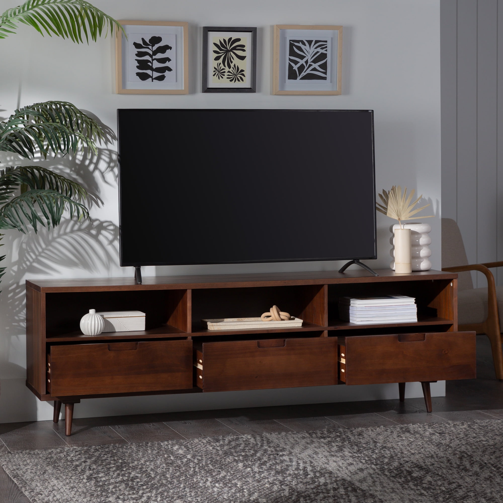 Walker Edison Modern Boho Wood 3 Drawer 70” TV Stand, Walnut