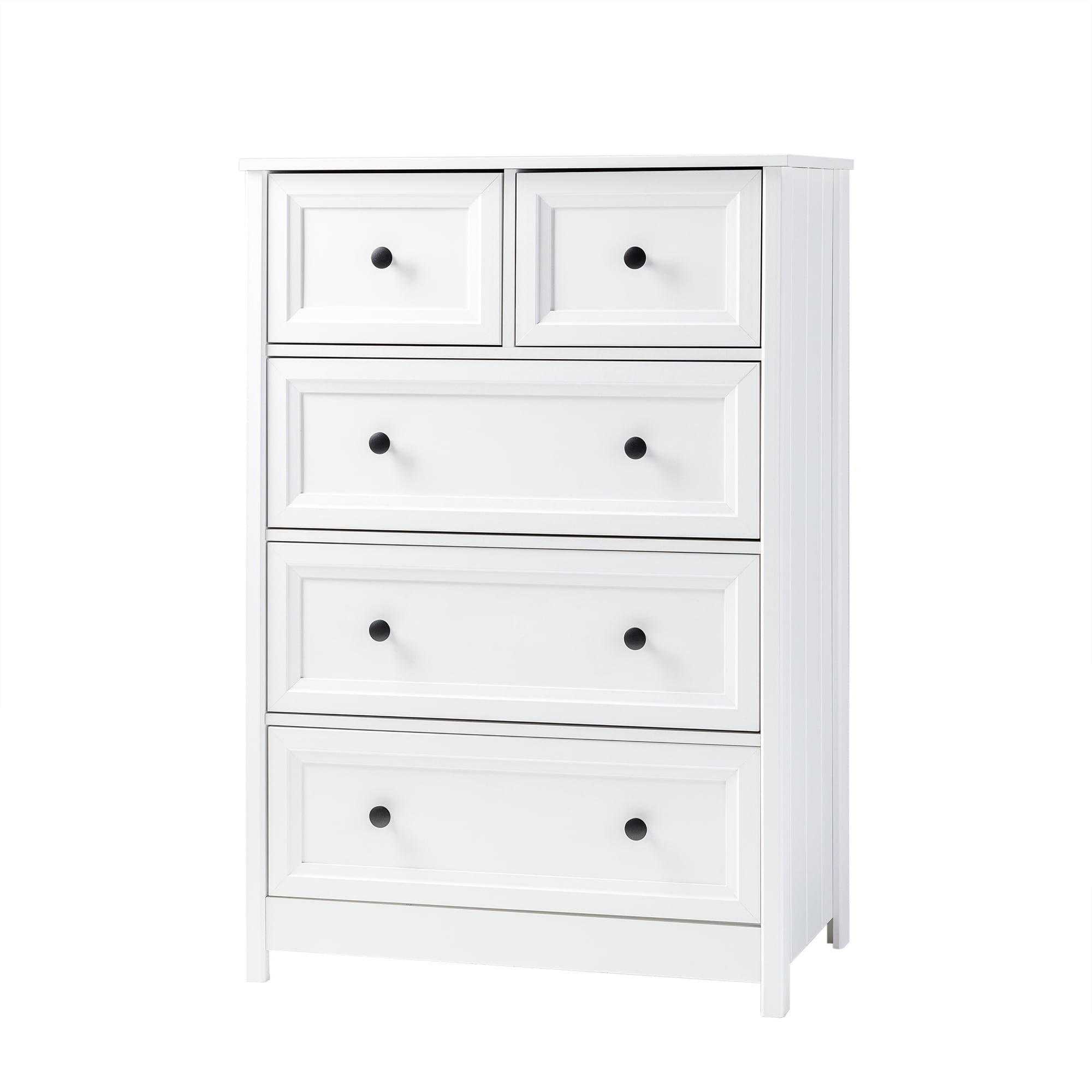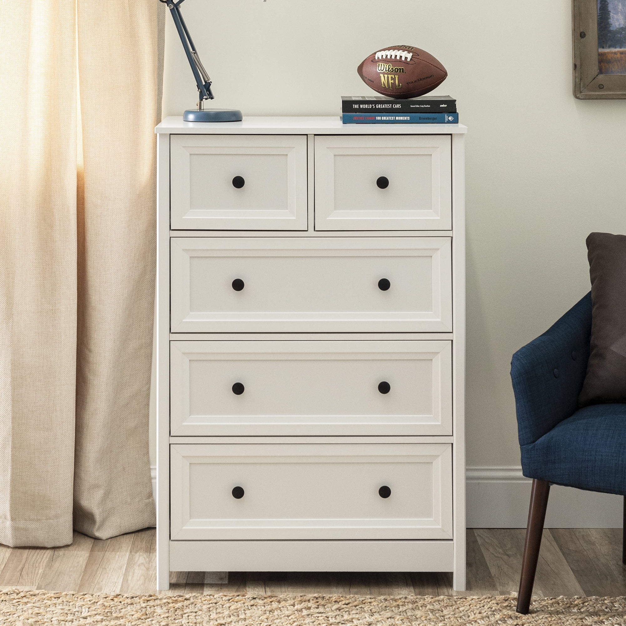 Walker Edison Modern Farmhouse Grooved 5-Drawer Dresser, White