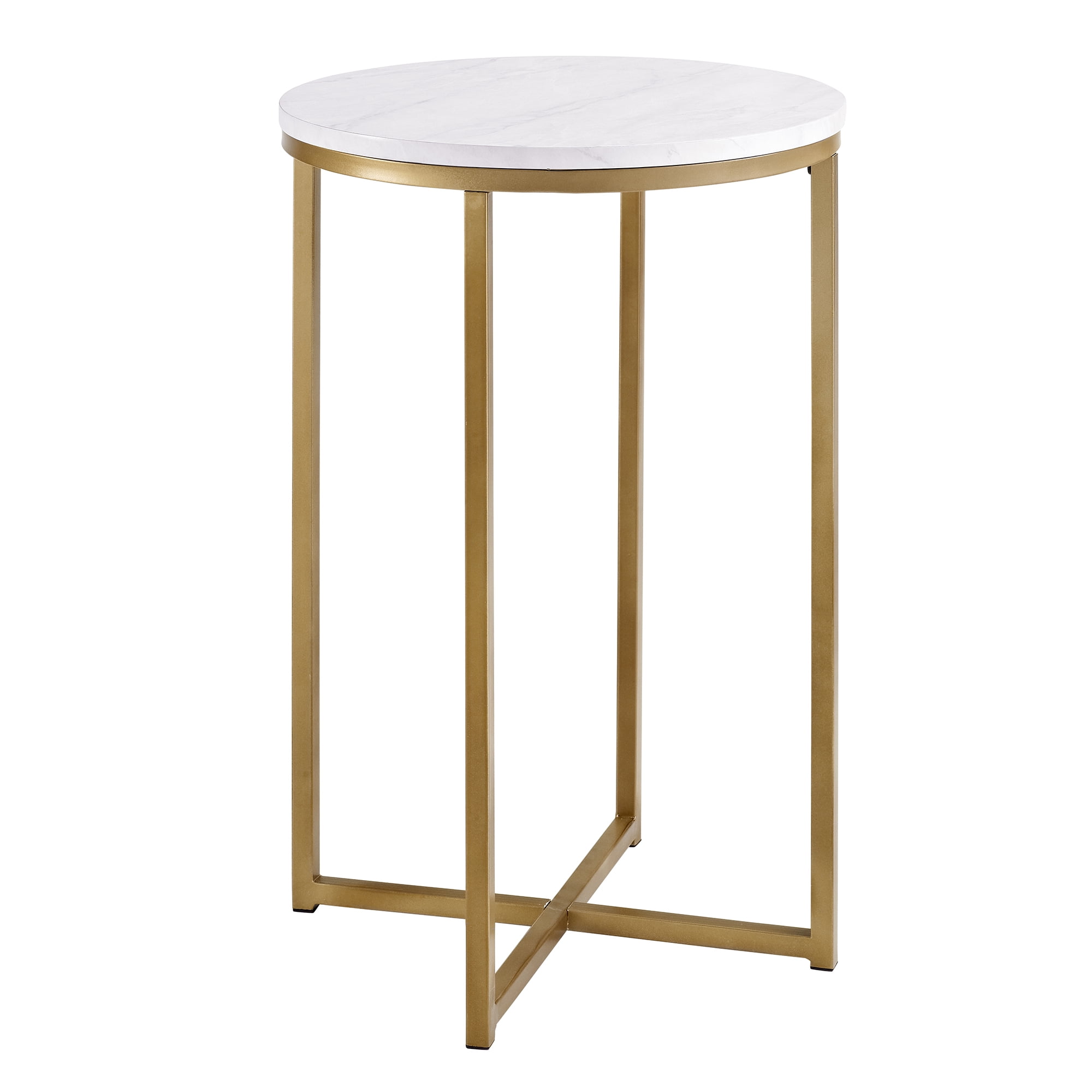 Walker Edison Modern Glam Round End Table, White Faux Marble/Gold