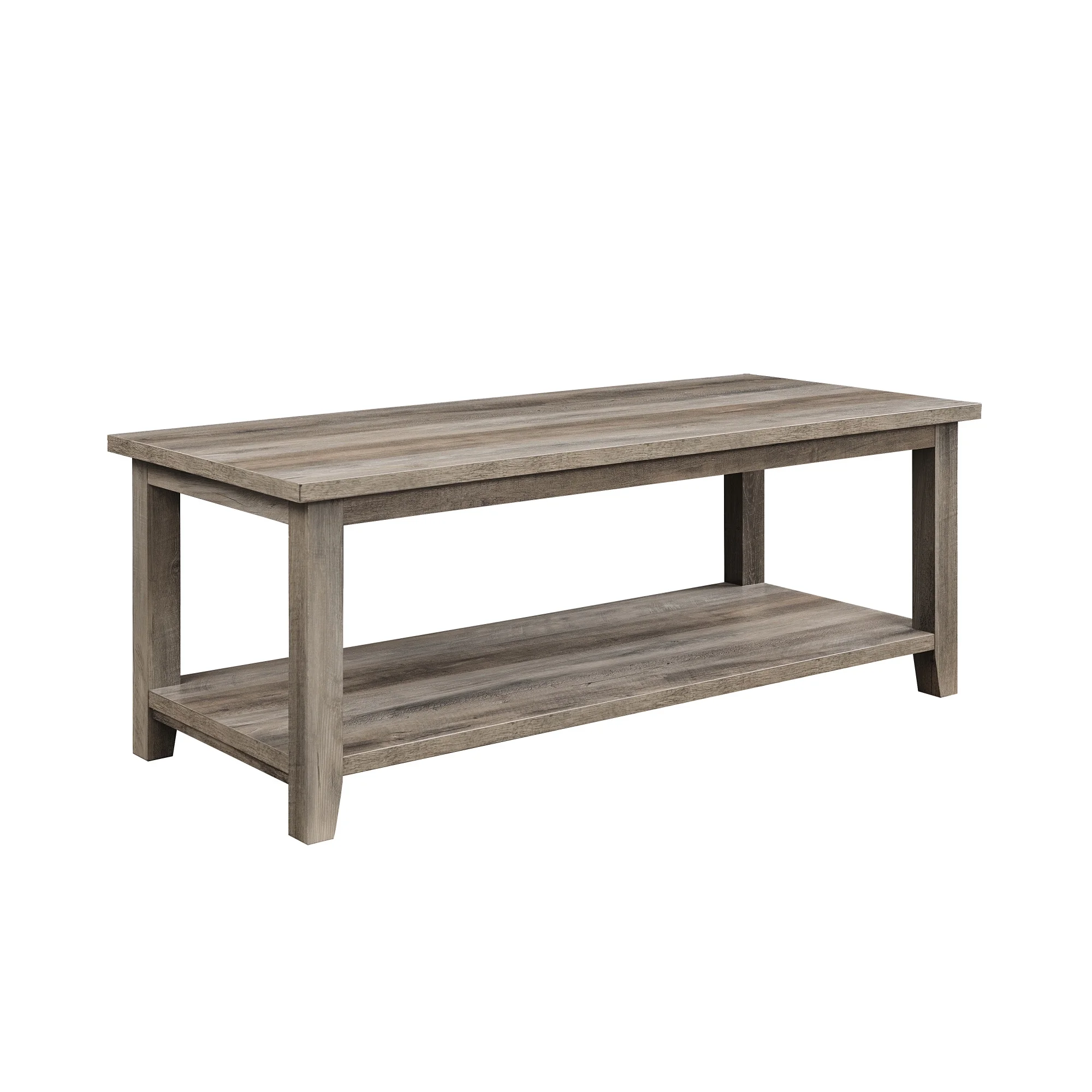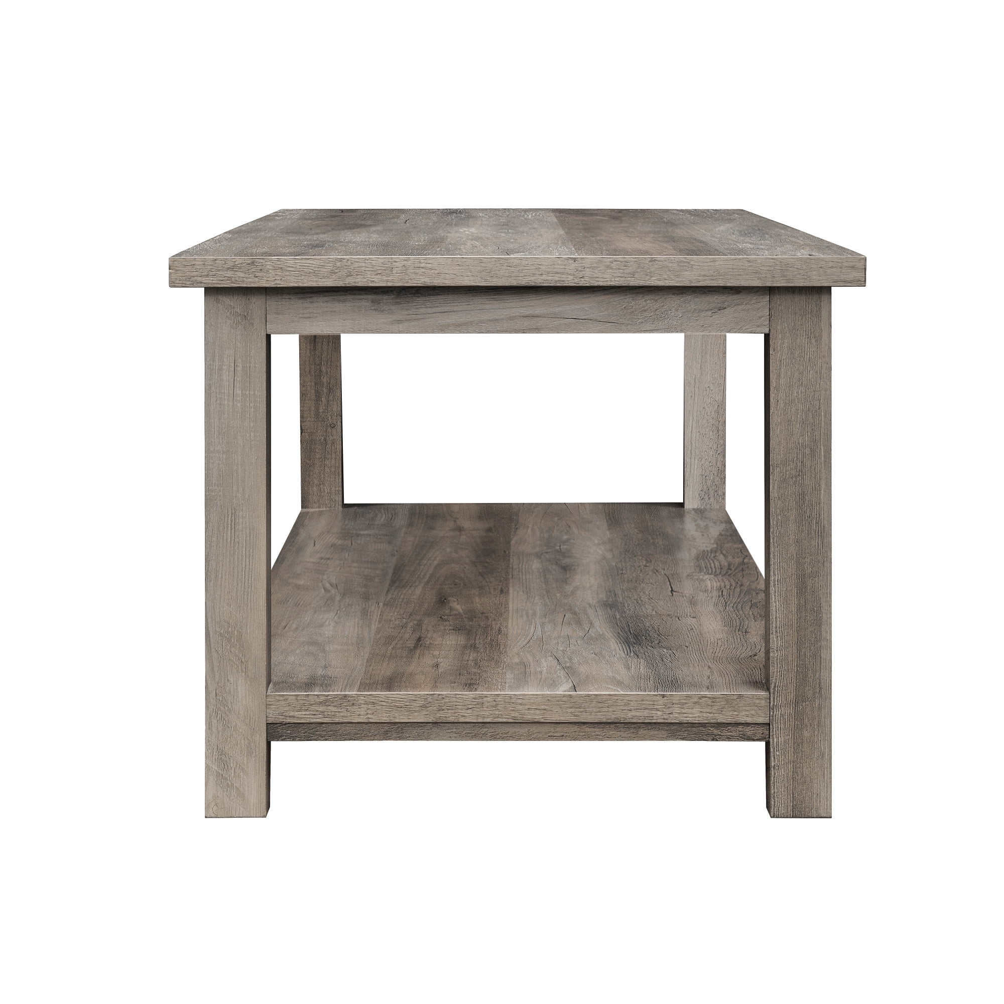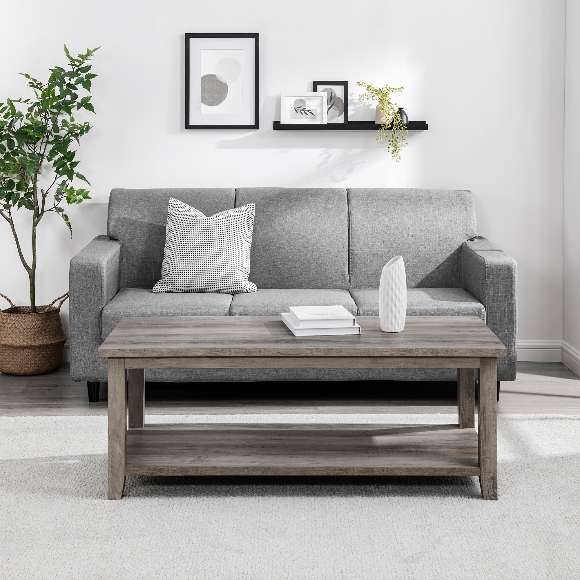 Walker Edison Modern Rustic Coffee Table with Shelf, Grey Wash