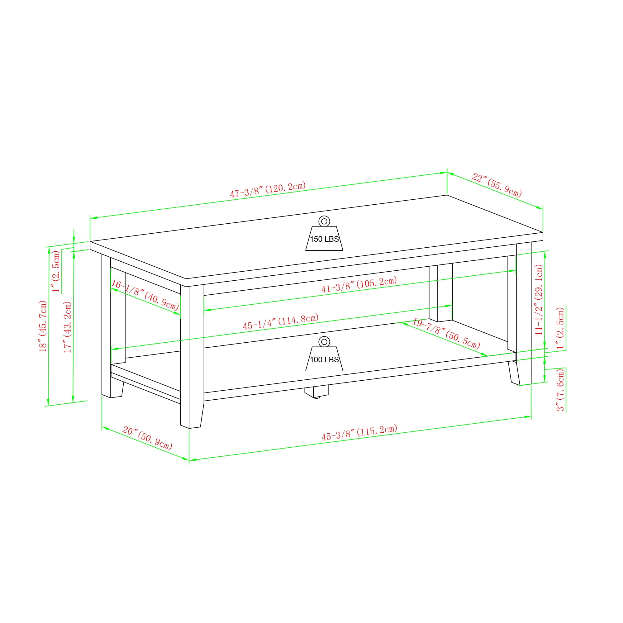 Modern rustic style Grey wash finish Featuring lower shelf for easy organization Perfect for living rooms or lobbies Versatile design that fits modern, rustic, or urban aesthetics Timeless silhouette will remain a favorite as your style evolves Made from warp-resistant MDF wood and durable laminate Ships ready-to-assemble with step-by-step instructions Assembled dimensions: 18” H x 48” L x 22” W Packaged dimensions: 6″ H x 53″ L x 26″ W