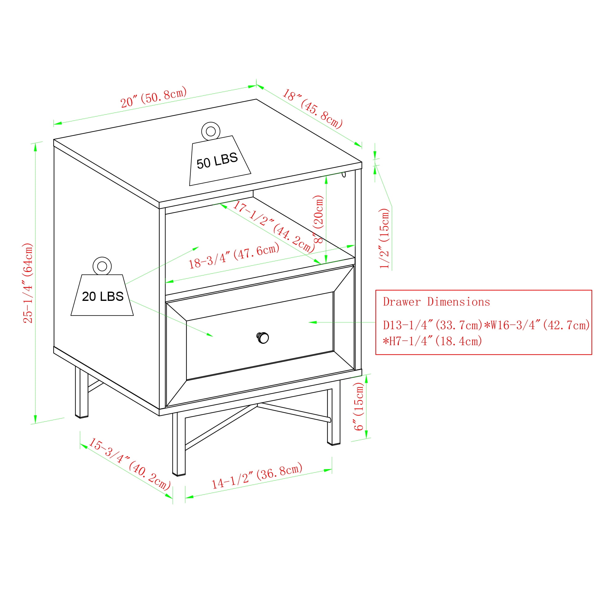 - Assembled Dimensions: 25” H x 20” L x 18” W