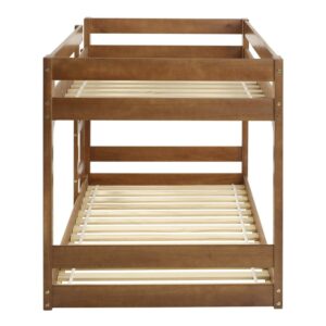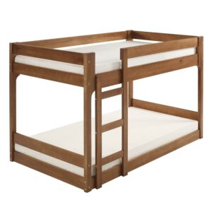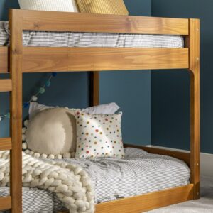 Walker Edison Modern Twin Over Twin Youth Bunk Bed, Caramel