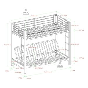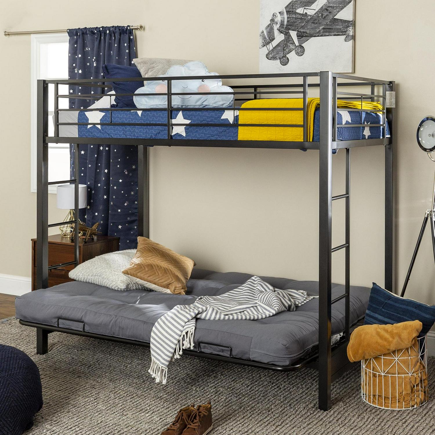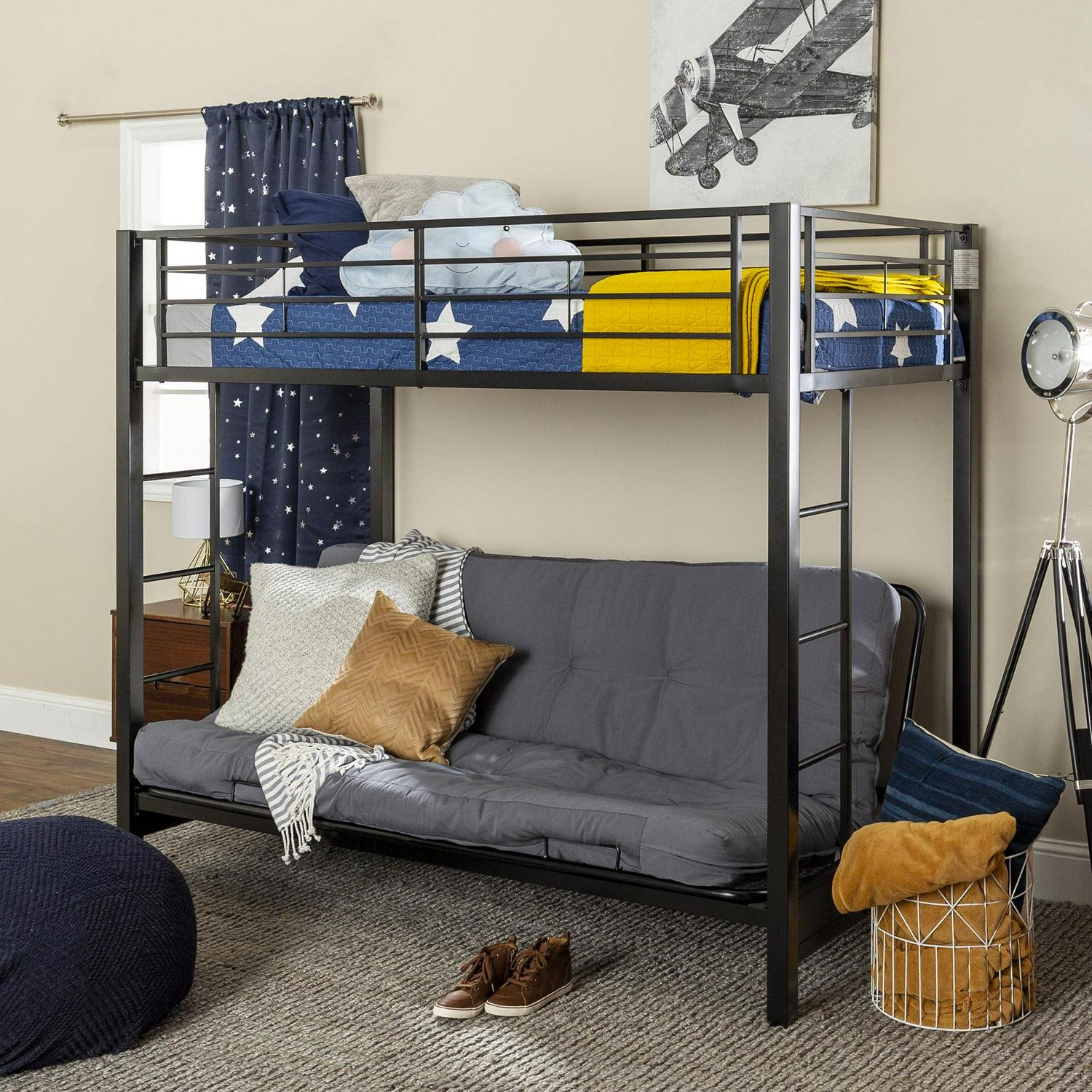 Walker Edison Premium Metal Twin Over Futon Bunk Bed – Black, Mattresses Not Included