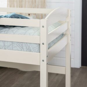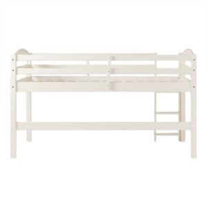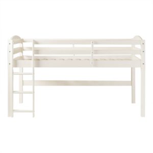 Walker Edison Solid Wood Junior Twin Low Loft Bed, White