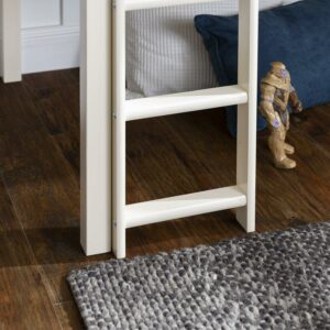 Stylish and sturdy, this Walker Edison low loft twin bed made of solid pine in a painted finish is sure to please anyone, college student to the child. The low height to ensure a safe climb at bedtime combined with enough space underneath for a fort to satisfy any imagination, or storage to maximize efficiency, this bed will be a hit no matter the design of the room. With no bedspring need, and a weight capacity of 250 pounds.