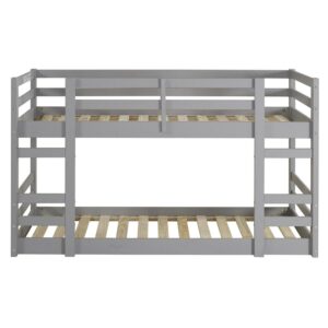 Walker Edison Solid Wood Twin over Twin Floor Bunk Bed, Grey