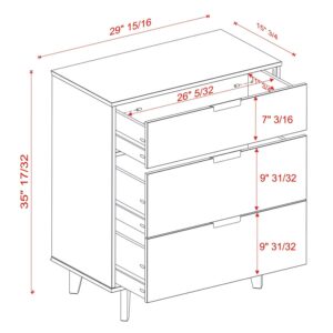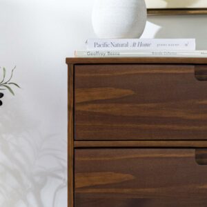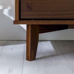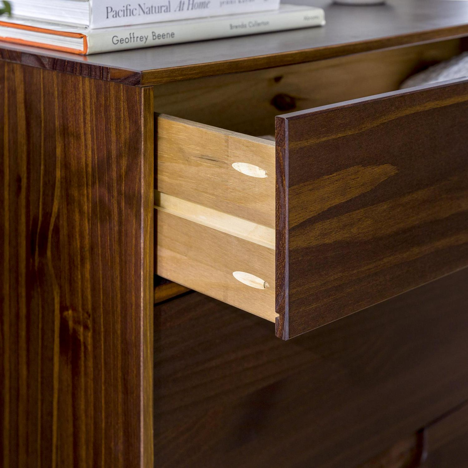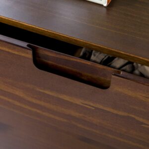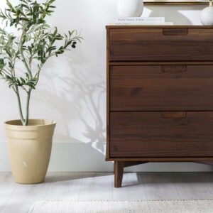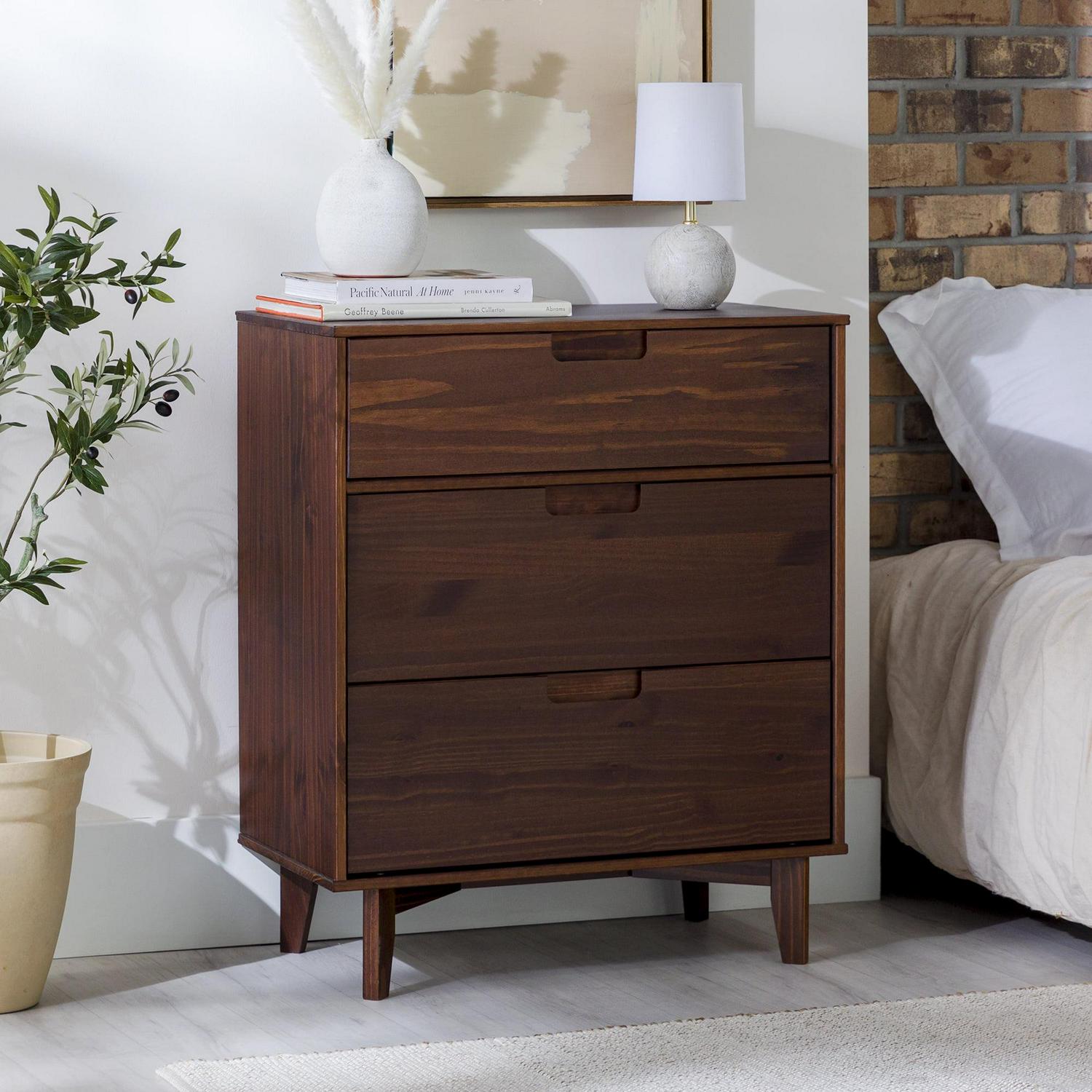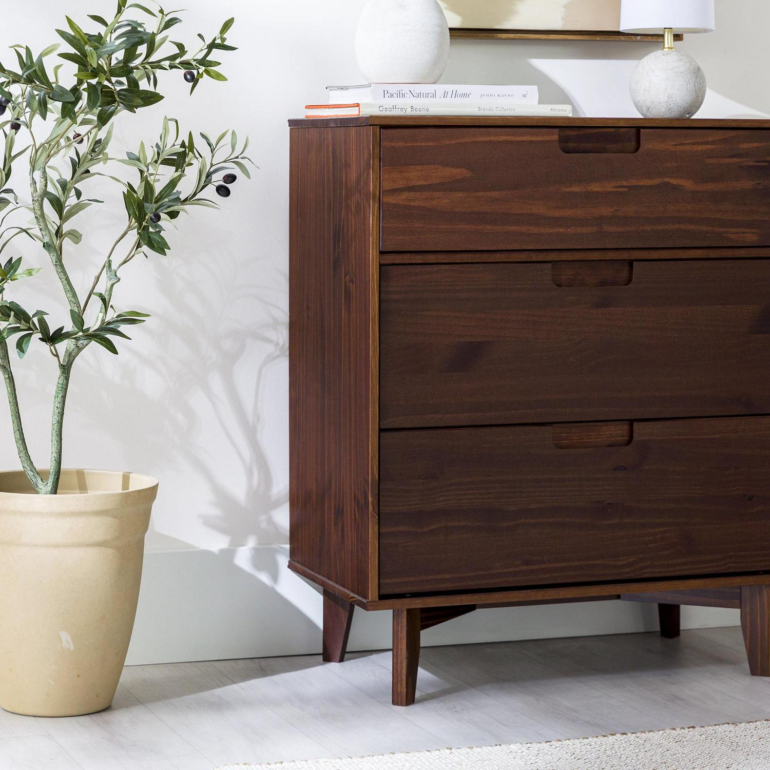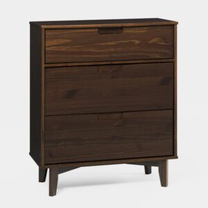 Needing a little more storage for clothing or other items in your bedroom The Sonoma 3-Drawer Walnut Dresser by Walker Edison is the answer. With three fashionable drawers, you will have a place to store important items with taste. The cutout handles add an extra element of taste while making set up very easy. Made from solid pine wood, this chest is very durable, and you will never want to part with it. The dresser also features wood runners that are easy to use and decrease the time of setup. Created as a mid-century piece, this dresser will enhance any decor approach you choose.