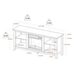 Display your TV in style with this 58-inch TV stand and electric fireplace. Crafted from high-grade MDF with a durable laminate finish for a rich, textured surface, this storage console features two adjustable shelves on both sides of the fireplace for anything from your electronics to your home decor. With a cord management port at the back of each shelving space, you’ll never have to worry about a tangled mess of wires as it’ll keep them organized. This entertainment center mixes a traditional style with the on-trend rustic farmhouse look with its simple design and will be a classic piece to your living room. This media stand will accommodate most flat-panel TVs up to 64 inches. Installation for the fireplace requires no technician, simply plug into any standard household outlet.