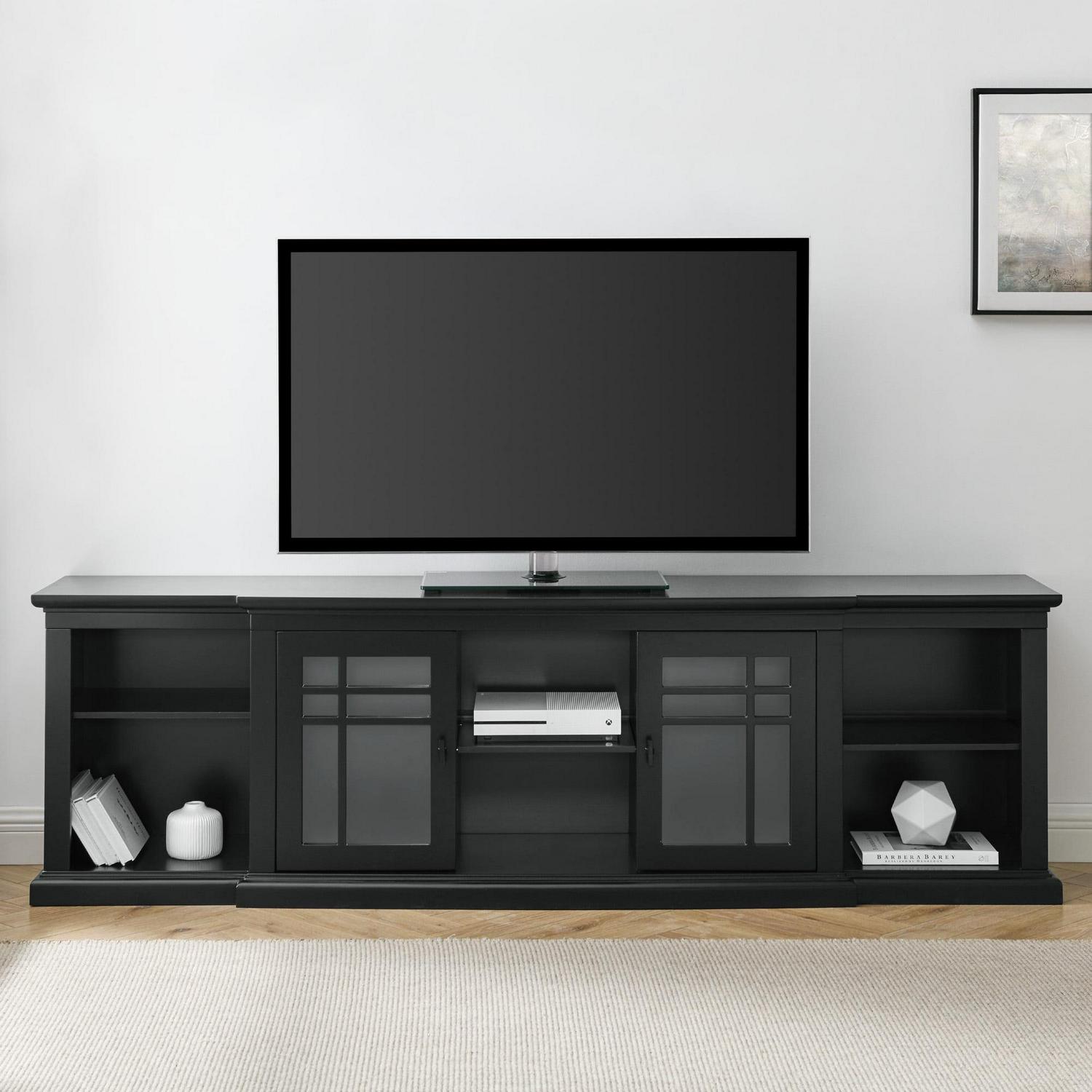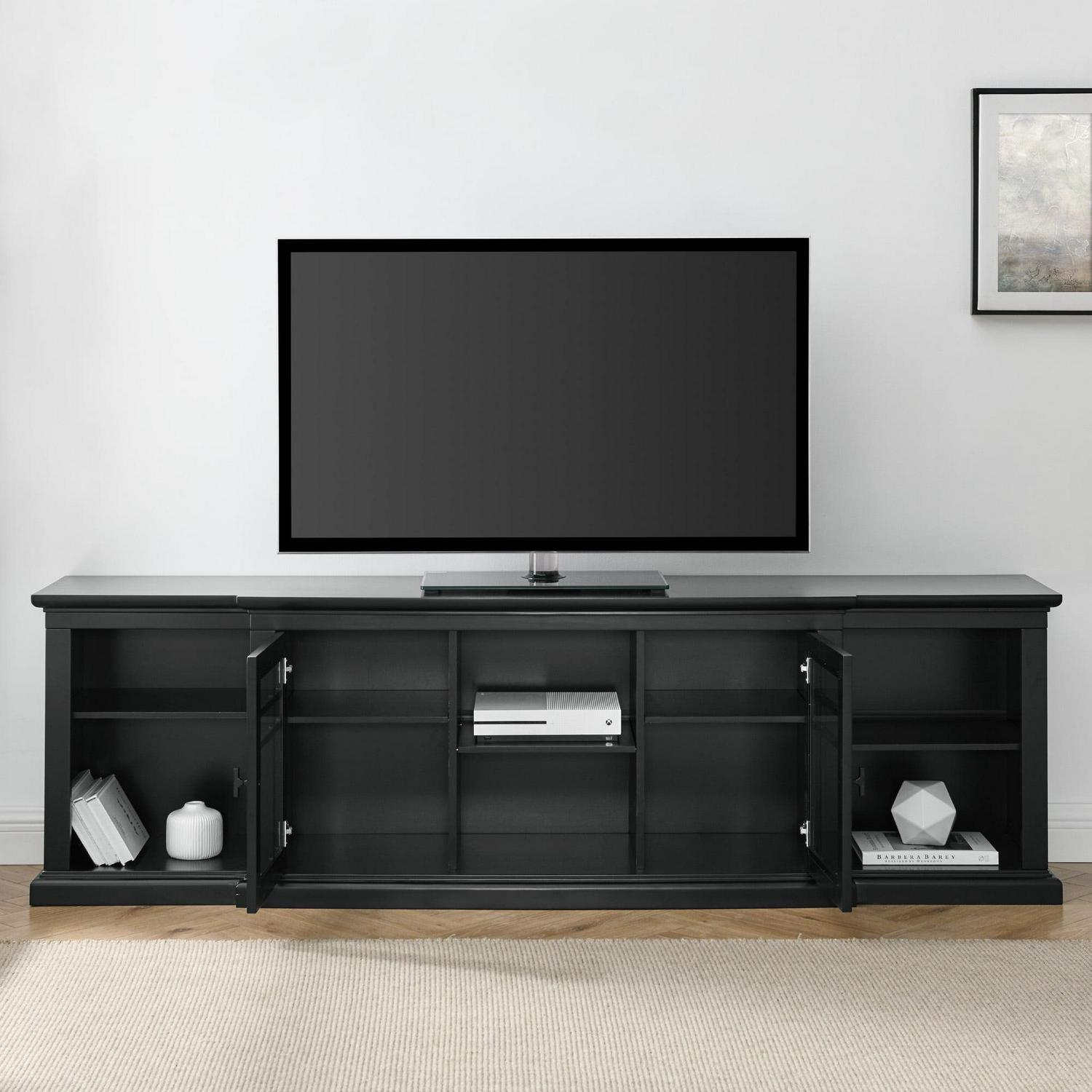 Walker Edison Transitional Glass-Door TV Stand for TVs up to 88a , Black