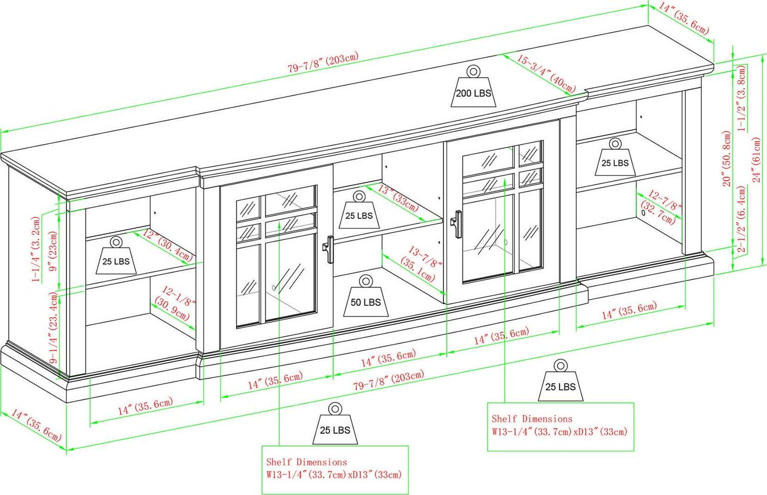 – Assembled Dimensions: 24 H x 80 L x 16 W