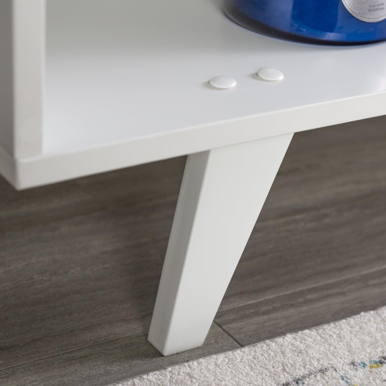 Simplicity meets mid century style in our mid century modern TV stand. Combining a modern aesthetic with convenient storage, minimalist and modernist are not the only ones to fall in love with this entertainment center, as it gives you a simple, clean look to your living room you ll enjoy having in your home. Built with sturdy high-grade MDF and featuring a stylish, painted finish with angled legs, this media console can accommodate most TV s up to 60 inches.