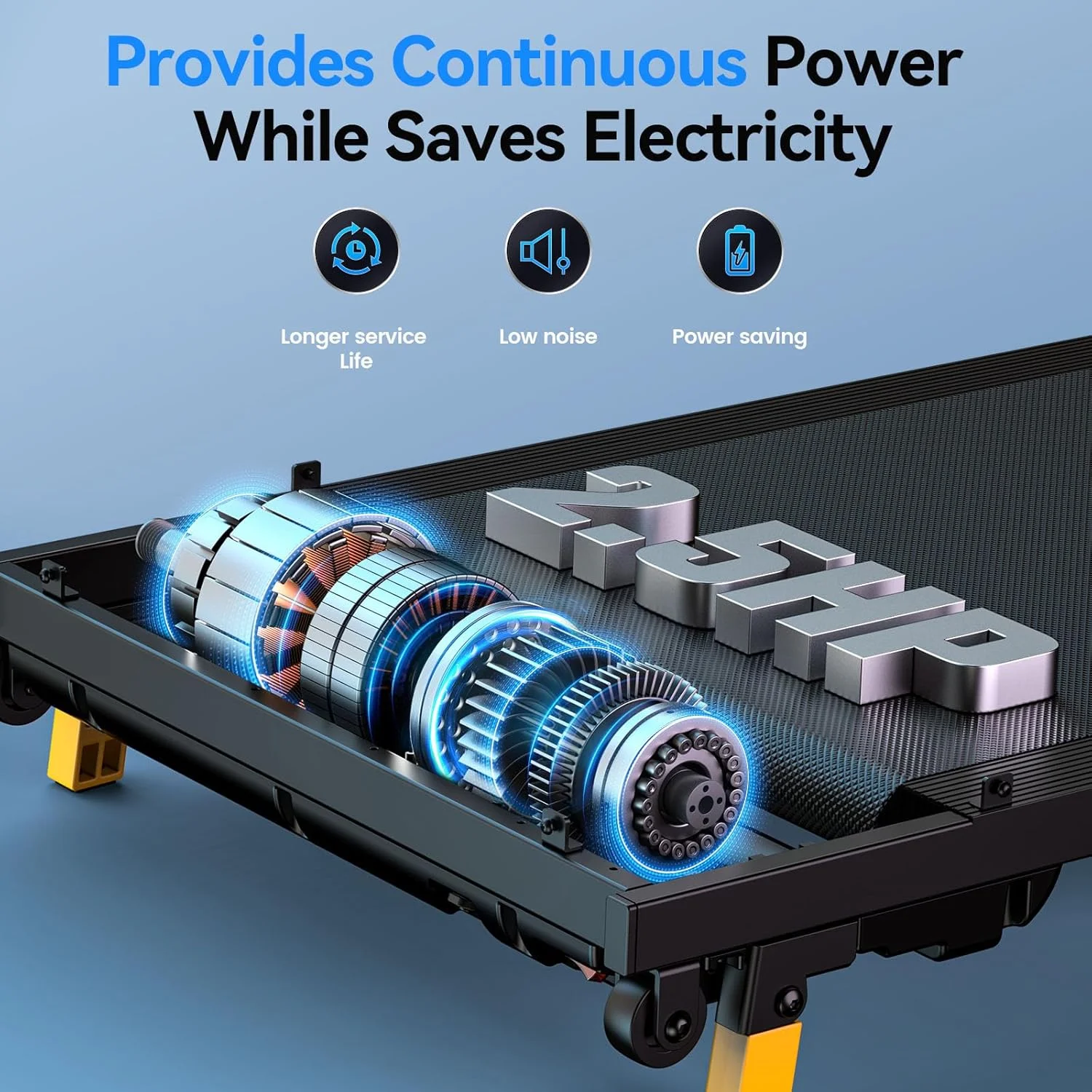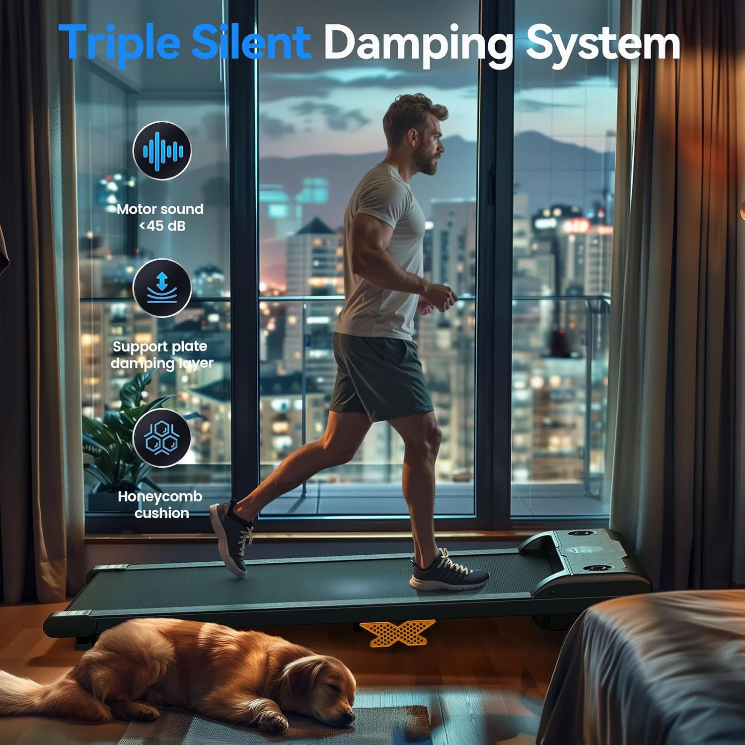 Hidden Safety Switch: The switch is hidden under the front of the walking pad, maintaining the streamlined appearance of the machine while ensuring the safety of family members. The switch is hidden from the sight of children and prevents pets from opening it. Powerful 2.5HP Silent Drive Motor: The walking pad is equipped with a powerful silent drive motor that can withstand loads up to 265 lbs. The multi-layer protective cover for the motor reduces noise, making your workouts quieter, safer, and more stable. 45 dB Silent Operation: Designed with a triple shock-absorbing system, the walking pad is made of high-quality steel, anti-slip running belt, and two honeycomb soft rubber pads. This increases the comfort of the sports experience, minimizes the risk of injury, reduces joint impact, and protects your knees. Up to 50% Fat Burning Effect: The 5% adjustable incline structure can be easily switched in 2 seconds, providing a simulated mountaineering-like exercise experience that effectively shapes the gluteal muscles and leg lines. Enjoy the feeling of climbing, and experience a 50% higher fat-burning effect compared to ordinary treadmills. Sensitive Control of 17-Speed Levels: Whether you are a beginner or an experienced runner, use the remote control to easily adjust the speed and choose the perfect pace. The LED display shows time, calories, speed, and distance, helping you track your exercise data without manual switching during your workout.