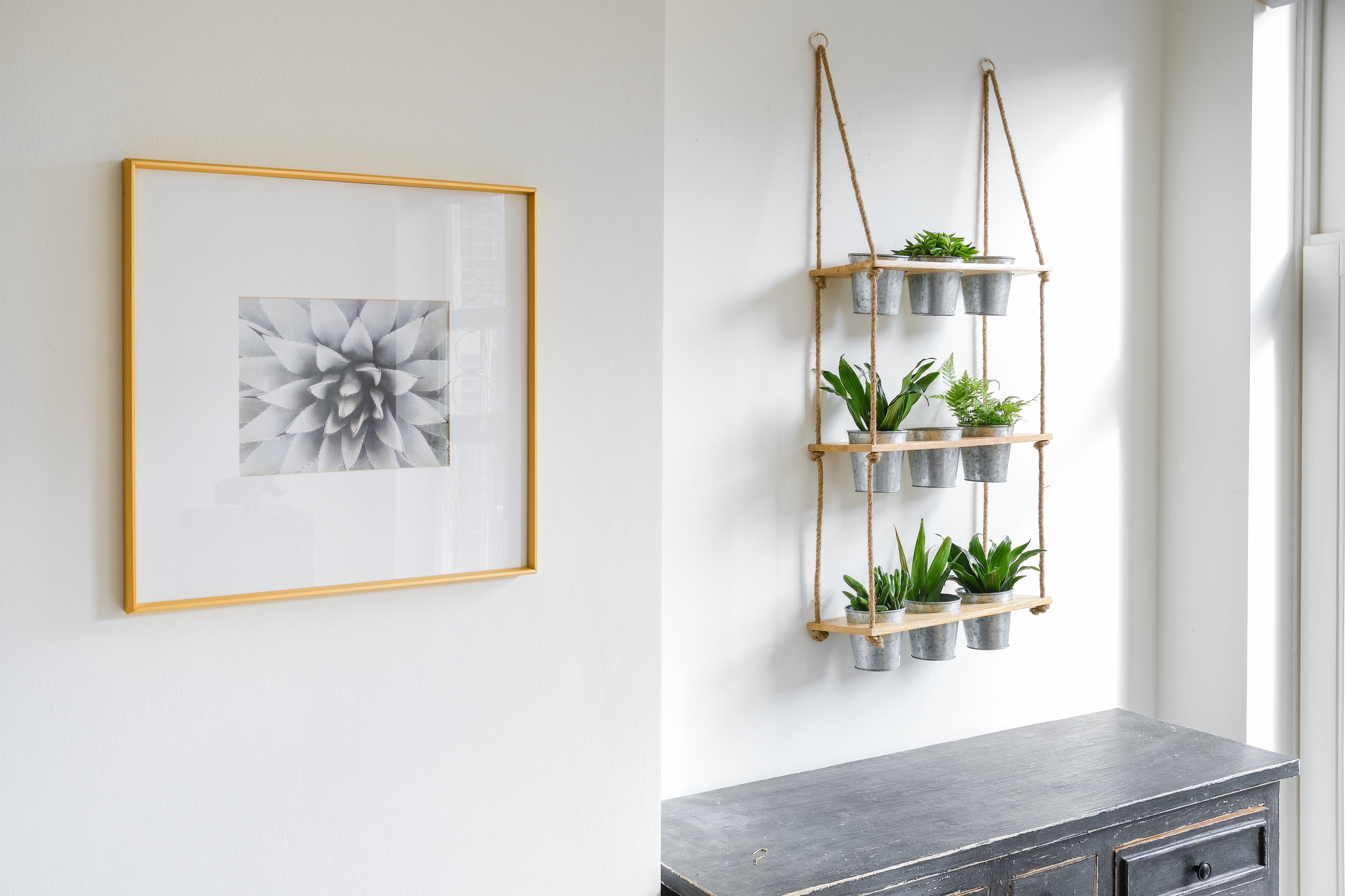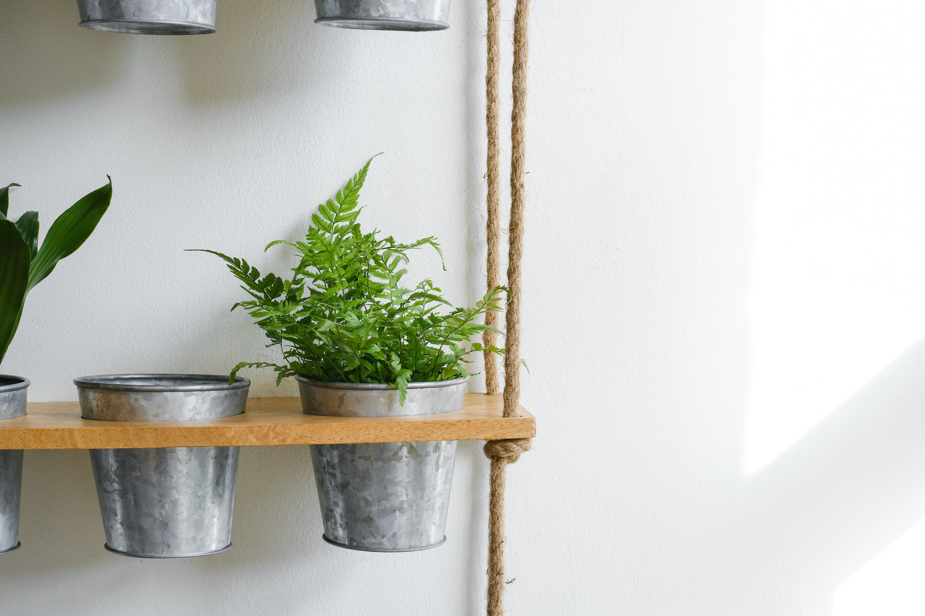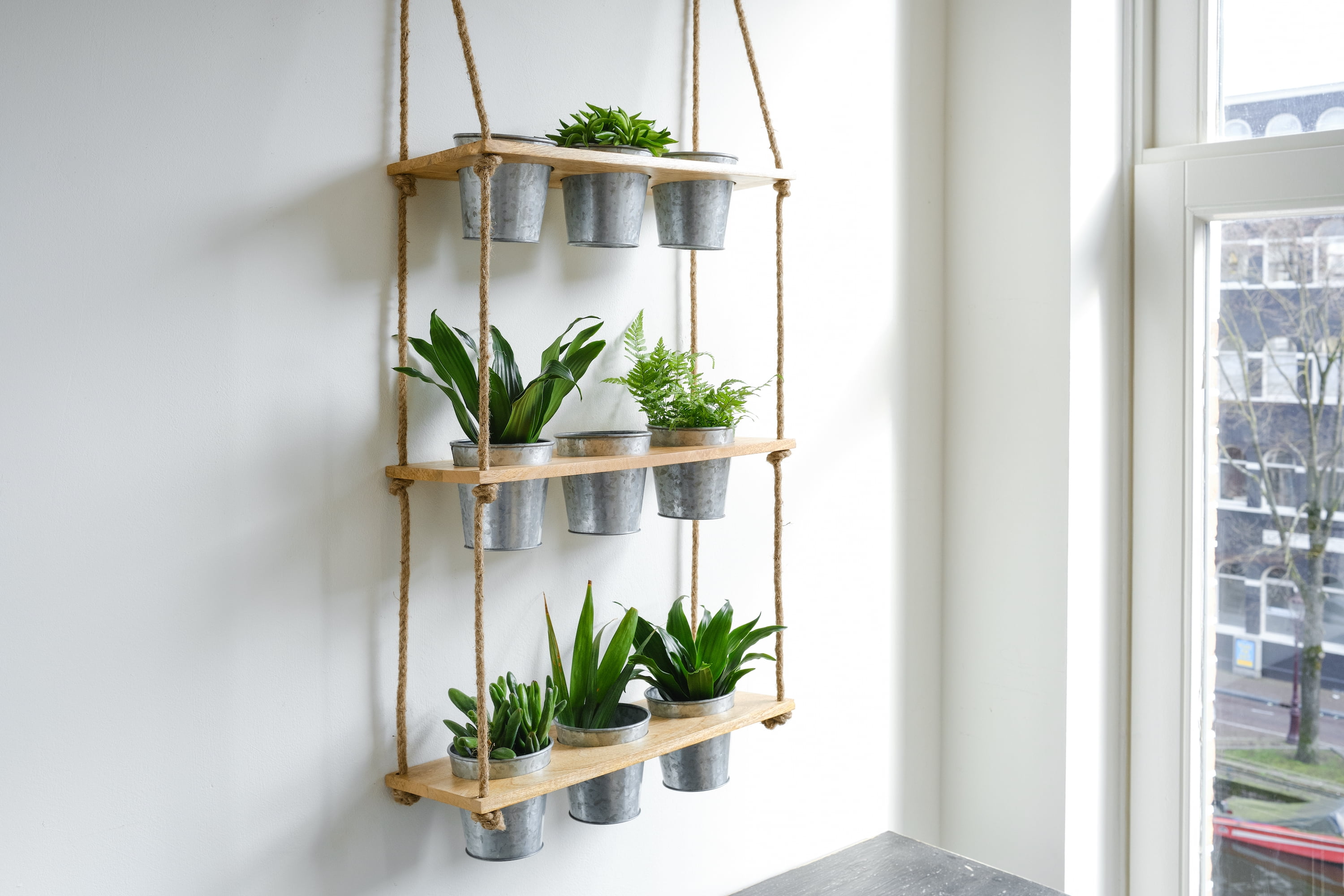 GARDENING IN STYLE: Kimisty KARMA plant shelfs brings gardening indoor in style. With its heavy high quality mango wooden shelves and galvanized Iron Pots in white and terracotta finish, it is the most stylish way to add some greenery on your walls.