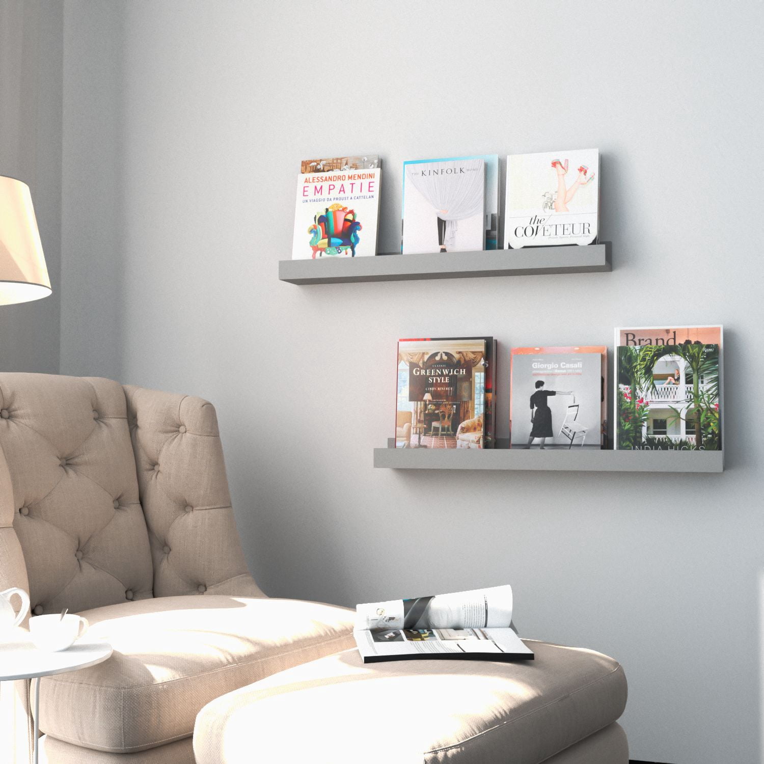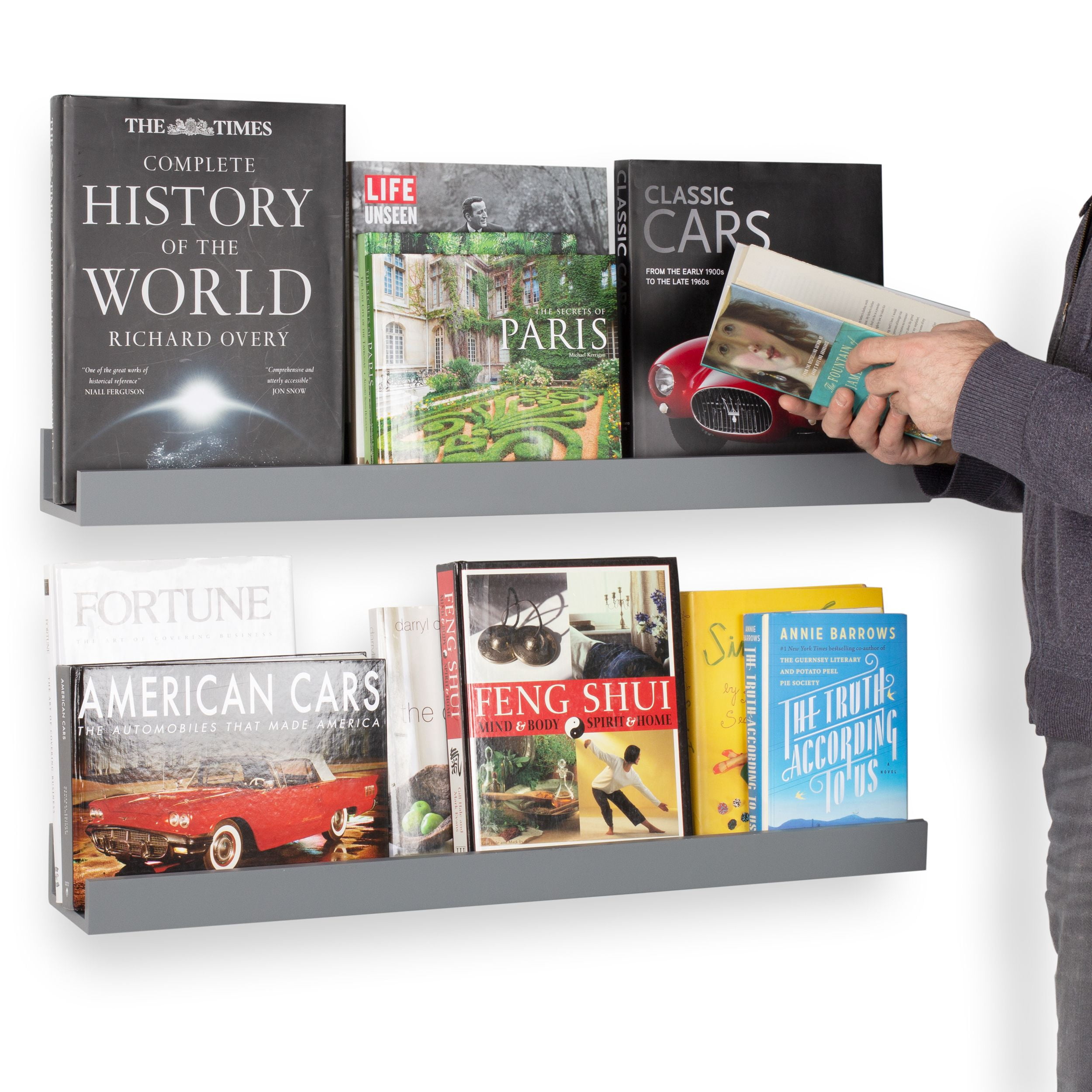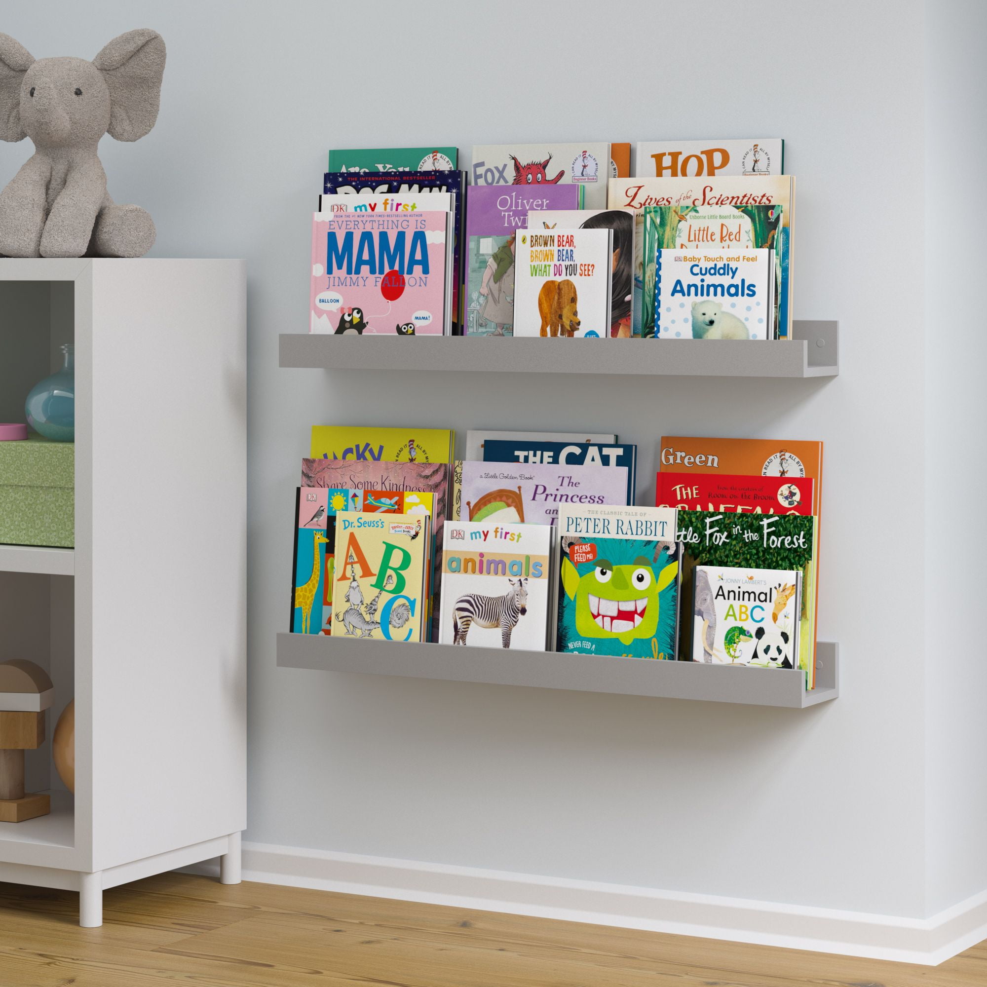 Wallniture Denver Picture Ledge Shelf Kids Bookcases Nursery Floating Shelves Toy Storage Organizer, Dark Gray, Set of 2