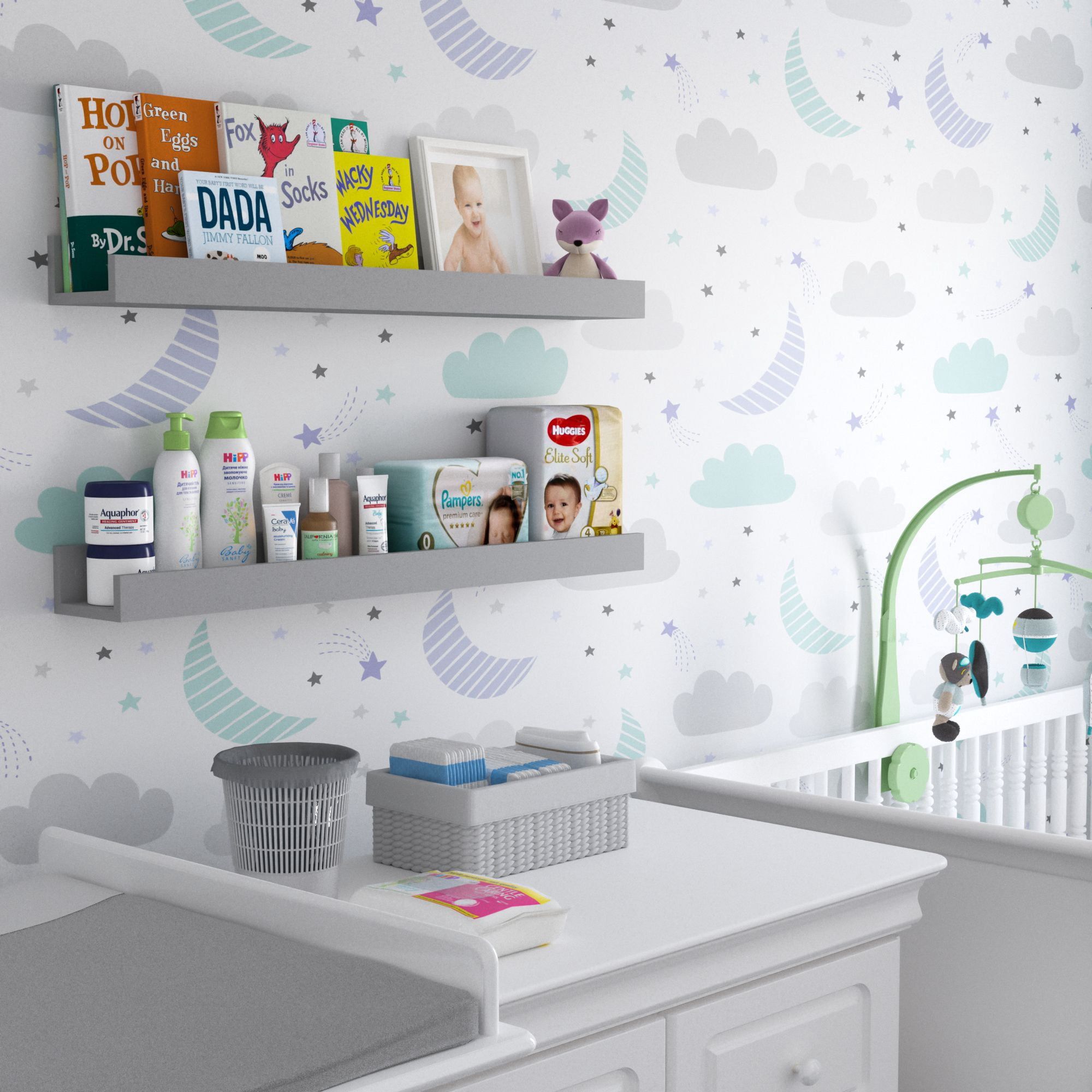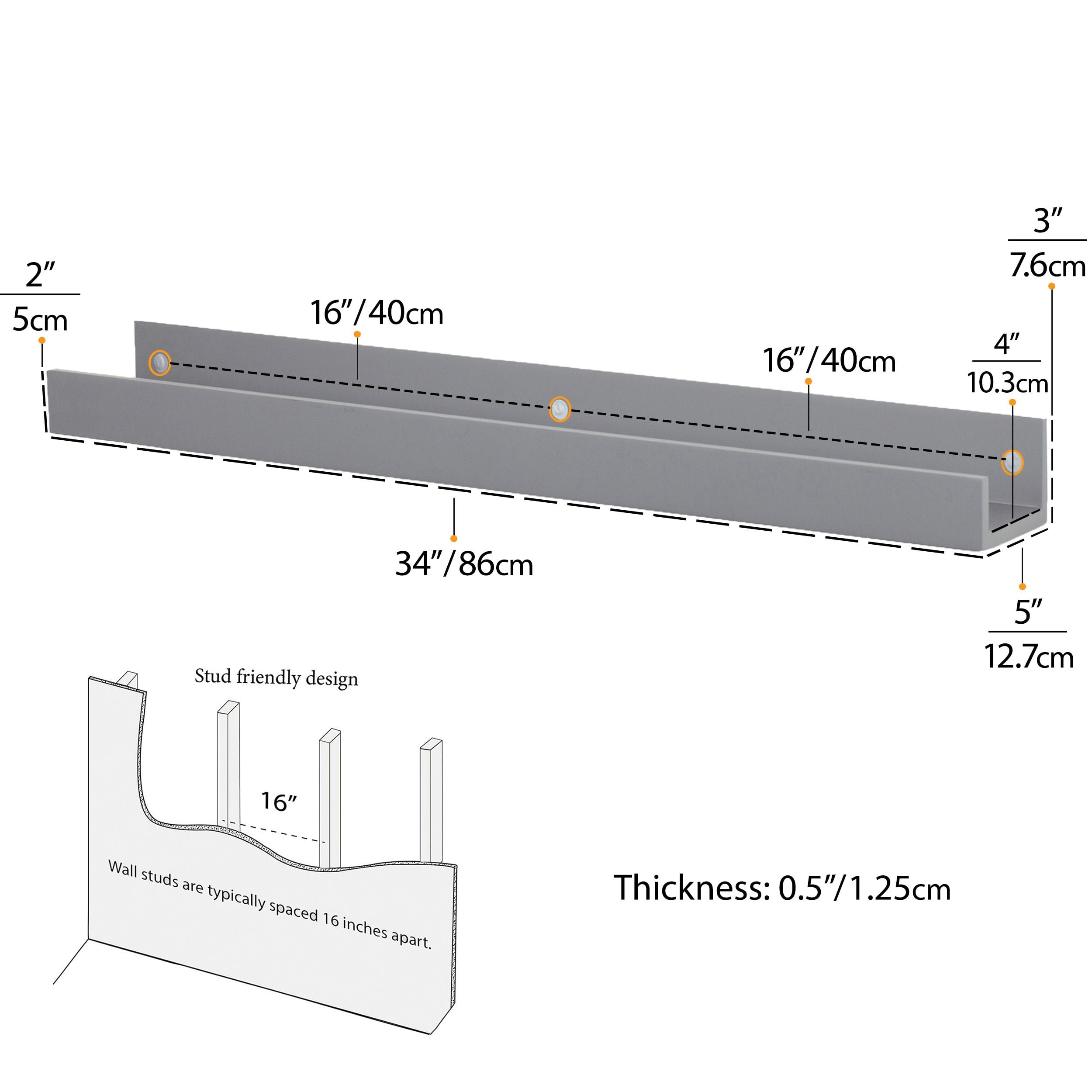 Set of 2, Wallniture DENVER Kids Bookcases Toy Storage Nursery Shelf, 34″x5″, Dark Gray Kids shelves create minimalist, chic, and versatile kids room wall shelf decor arrangements Suitable kids tıy shelf for storage to set in the kid’s bedroom, nursery and daycare Kid hanging bookcases provide handy spot for baby books, educational toys, and nursery pictures Can be used to display vinyl records, artificial plants, posters & prints in your wall decor Gray floating shelves add rustic touch to your kitchen and living room decorations Kids room wall shelf is also great match to your modern farmhouse decor and boho room decor Photo ledge has perfect floating shelf look, charming design, and high load capacity Toy room organizer and nursery shelf for wall holds up to 30 lbs Picture shelf for kid room can be one of the best gift set on birthday, baby shower, or housewarmings No assembly required; floating wall shelves come ready to hang Bookcases for nursery includes all necessary hardware pack and instruction manual Specifications Material: MDF Wood Color: Dark Gray Dimensions Kids Shelf Dimensions: L 34” x H 3” x D 5” Unit Weight Capacity: Up to 20 lbs if mounted on to drywall with included anchors and screws. If directly mounted on to the studs or wooden walls with included screws, capacity can go up to 30 lbs What is in the Package? 2x 34″ Ledge Shelf 1x Mini Level 6x Steel Screws 6x Metal Anchors 6x Screw Hole Covers 1x Installation Manual Each Wallniture wall bookcases for kid is designed to meet your pantry organization and storage needs or expectations. Ensure that once you buy our floating shelf dark gray, you will use our metal wall rack with life satisfaction. But if you encounter any problems, we will be here to assist you!