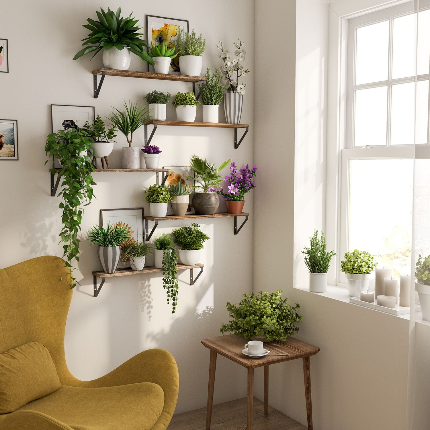 Wallniture PONZA wooden floating shelves provide practical storage space while enhancing the farmhouse aesthetic of your home decor! The customized wooden shelves are designed to be the focal point of your modern farmhouse wall decor. You can hang them anywhere at home with ease. Outside the kitchen and bathroom, these shelves can be used for decorative items in your living room and bedroom. PONZA hanging shelves will provide a neat and functional kitchen organization without the need for bulky pantry cabinets or jamming your kitchen gadgets into narrow storage drawers! By using Wallniture rustic kitchen shelves, you not only bring warmth and additional texture to the kitchen and dining area, but also natural burned board and decorative brackets provide an elegant contrast to complete your living room decor. Use a wall shelf set of 5 to have instant, usable spots for easy removal and use of home accessories. With PONZA hanging wall organizer unit, store everything from green plants and picture frames to precious vase collections, collectibles, or books. Utilize them as a wall bookcase in your bedroom, or use them to store home office supplies neatly. Wallniture PONZA organizers and storage units come with all necessary hardware set that we send for easy installation.