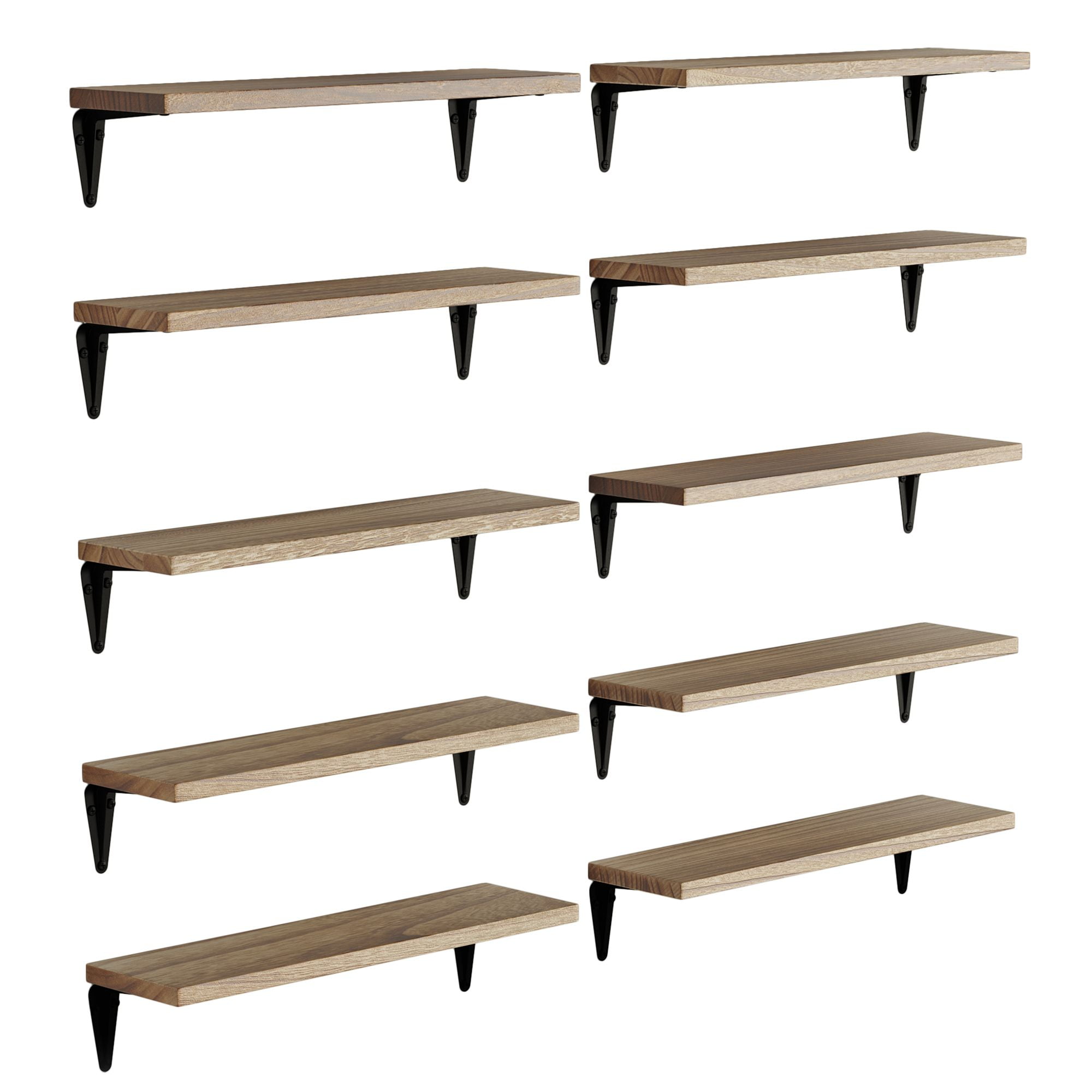 Wallniture Set of 10 Wall Mounted Rustic Floating Wood Wall Shelves with Metal Brackets, Natural Burnt
