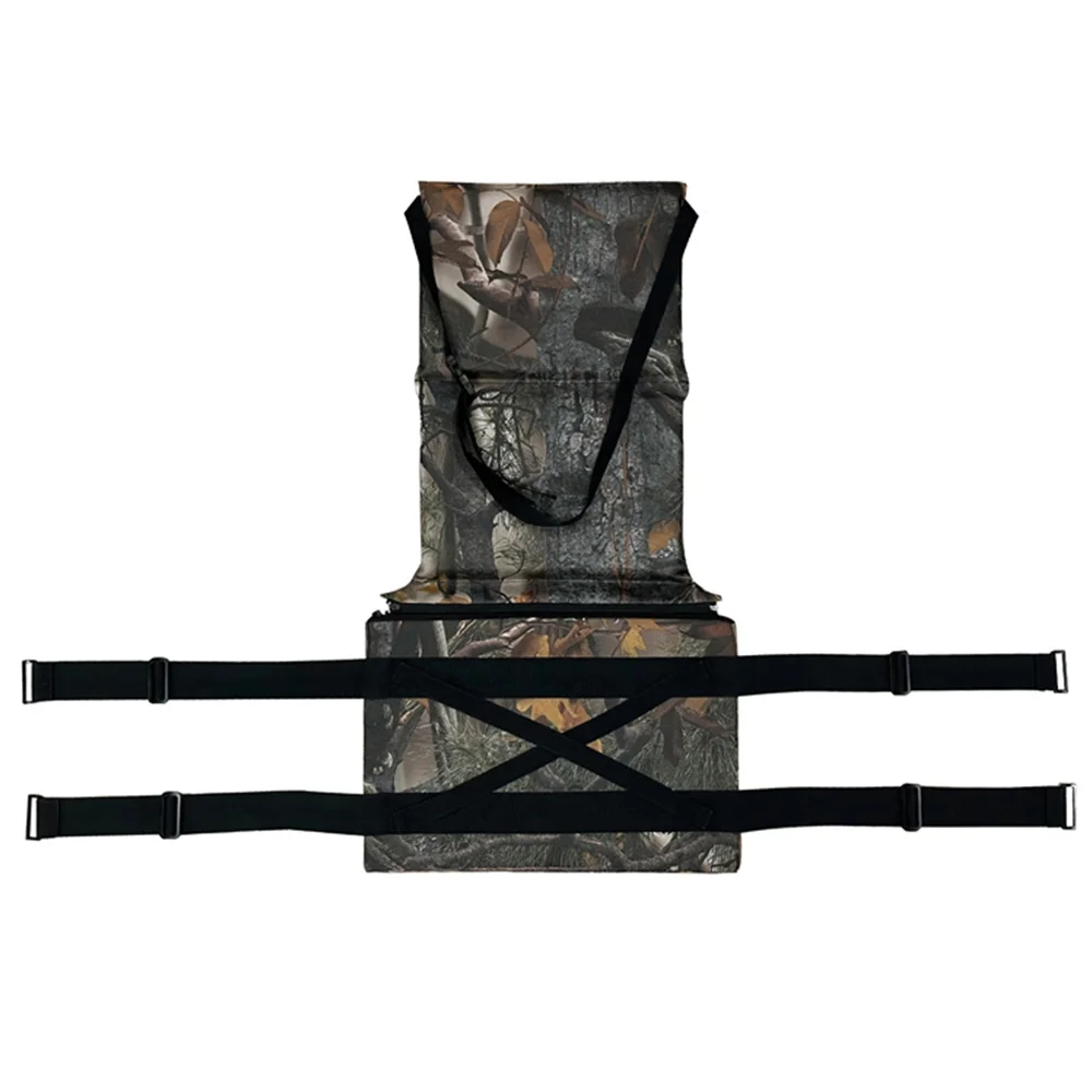 Designed with adjustable back buckles and height-adjustable seat belts, our seat cushion offers a customized fit for different individuals, resulting in a more comfortable sitting experience. 4-point strap design at bottom ensures stability and prevents unwanted movement. Features: Our tree stand seat cushion is made with a durable Oxford cloth surface, ensuring long-lasting use. 6.5cm foam seat cushion provide exceptional comfort, even during extended periods of sitting. With its camouflage exterior, our seat cushion seamlessly blends into natural surroundings, enhancing your concealment and reducing risk of being detected by your target. reinforced cross stitching and sturdy straps ensure a higher weight capacity, providing peace of mind during use. When not in use, it can be easily folded and stored, taking up small space. Specifications: Material: 600D Oxford cloth + pearl cotton + sponge Color: Camouflage/ Hazel Camouflage (optional) Size: 46*31*59cm/ 18.1*12.2*23.3in Weight: 730g/ 25.7oz Package list: 1 * Seat Cushion